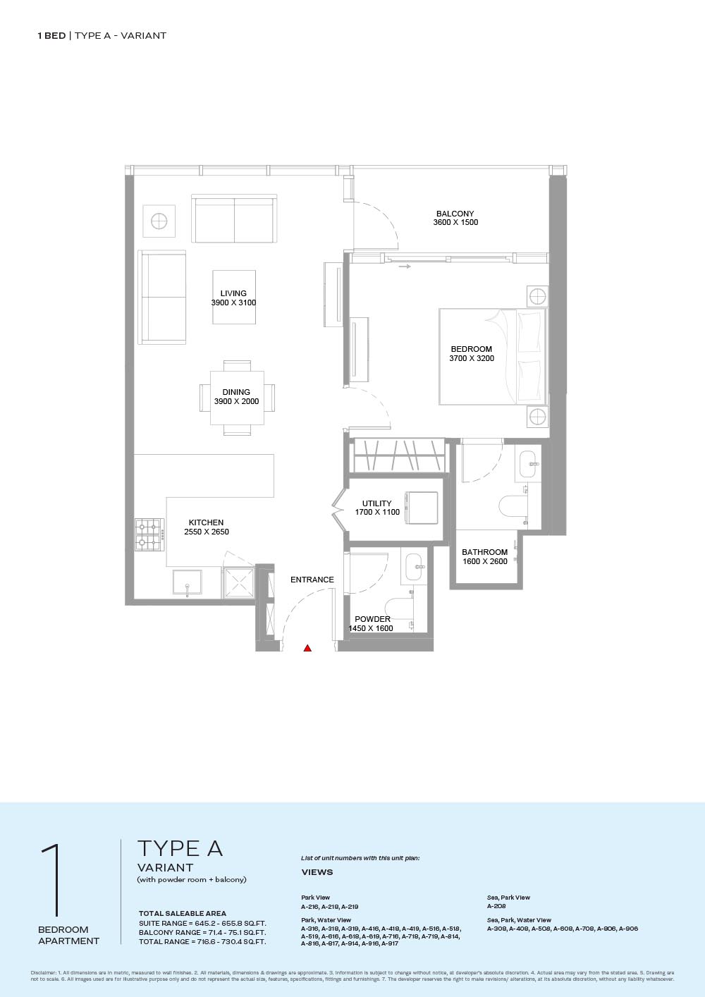 | Tower A | 1 Bedroom | 09th Level (Type A-Variant) | 730.40 Sq Ft | Click Here |