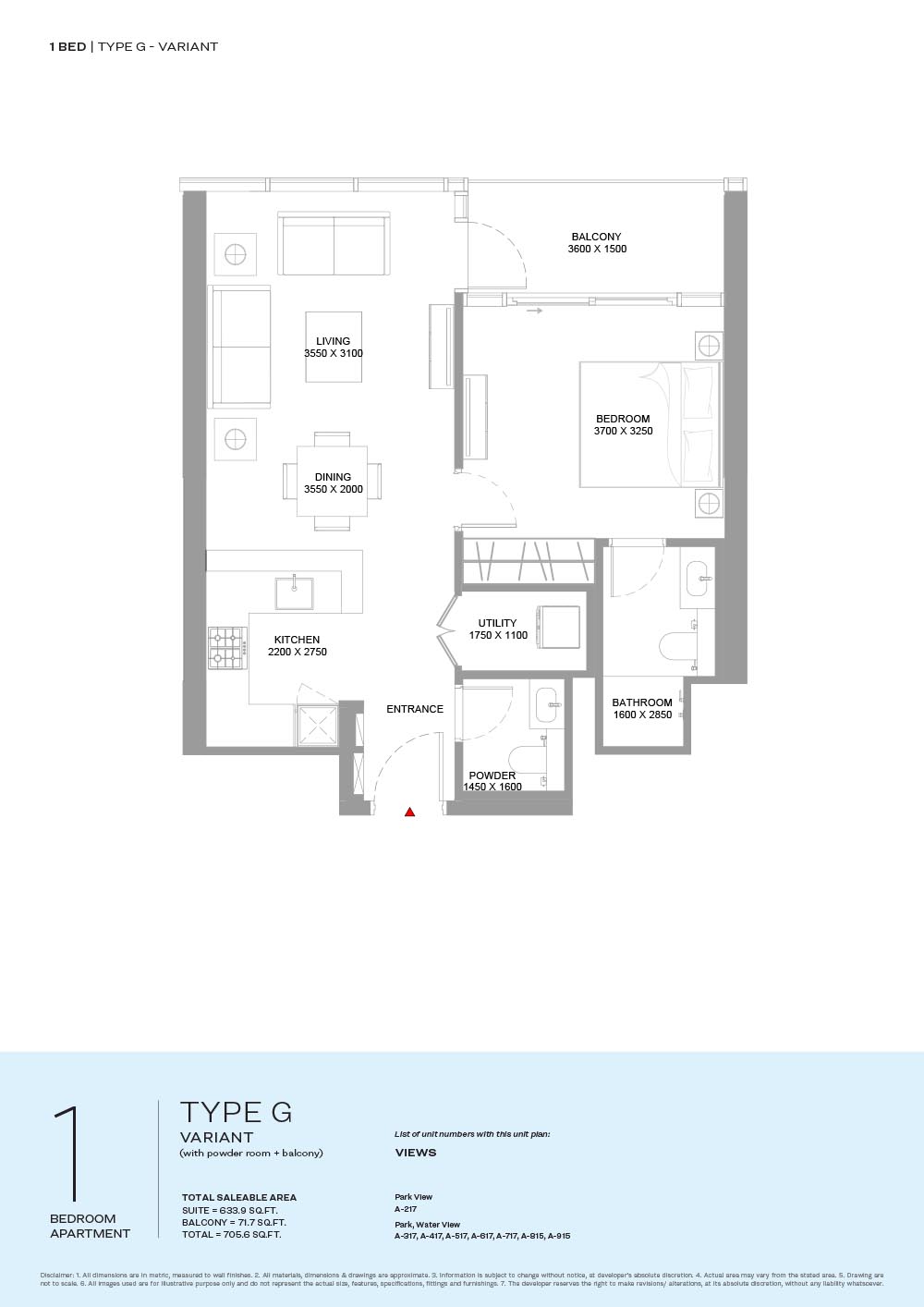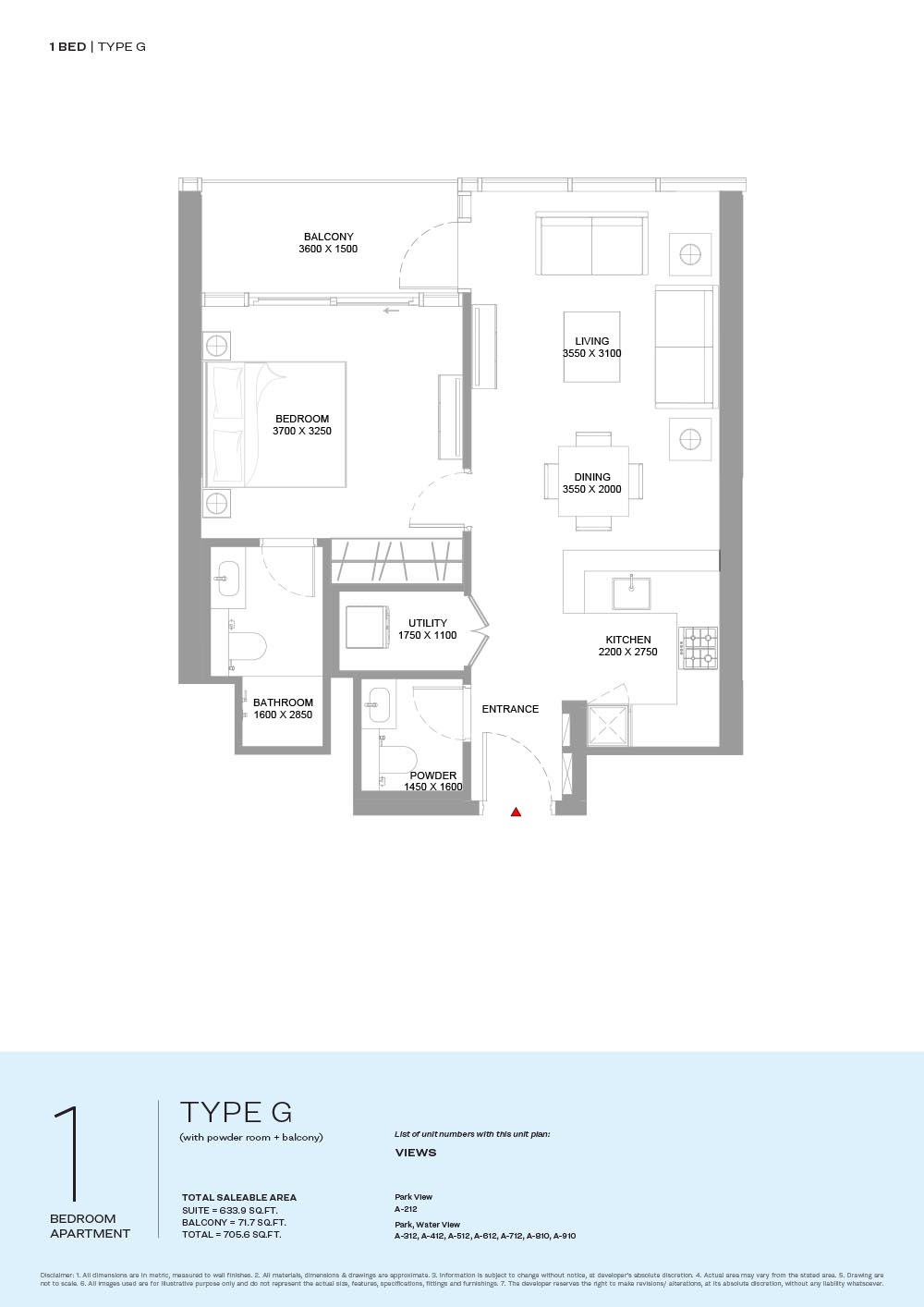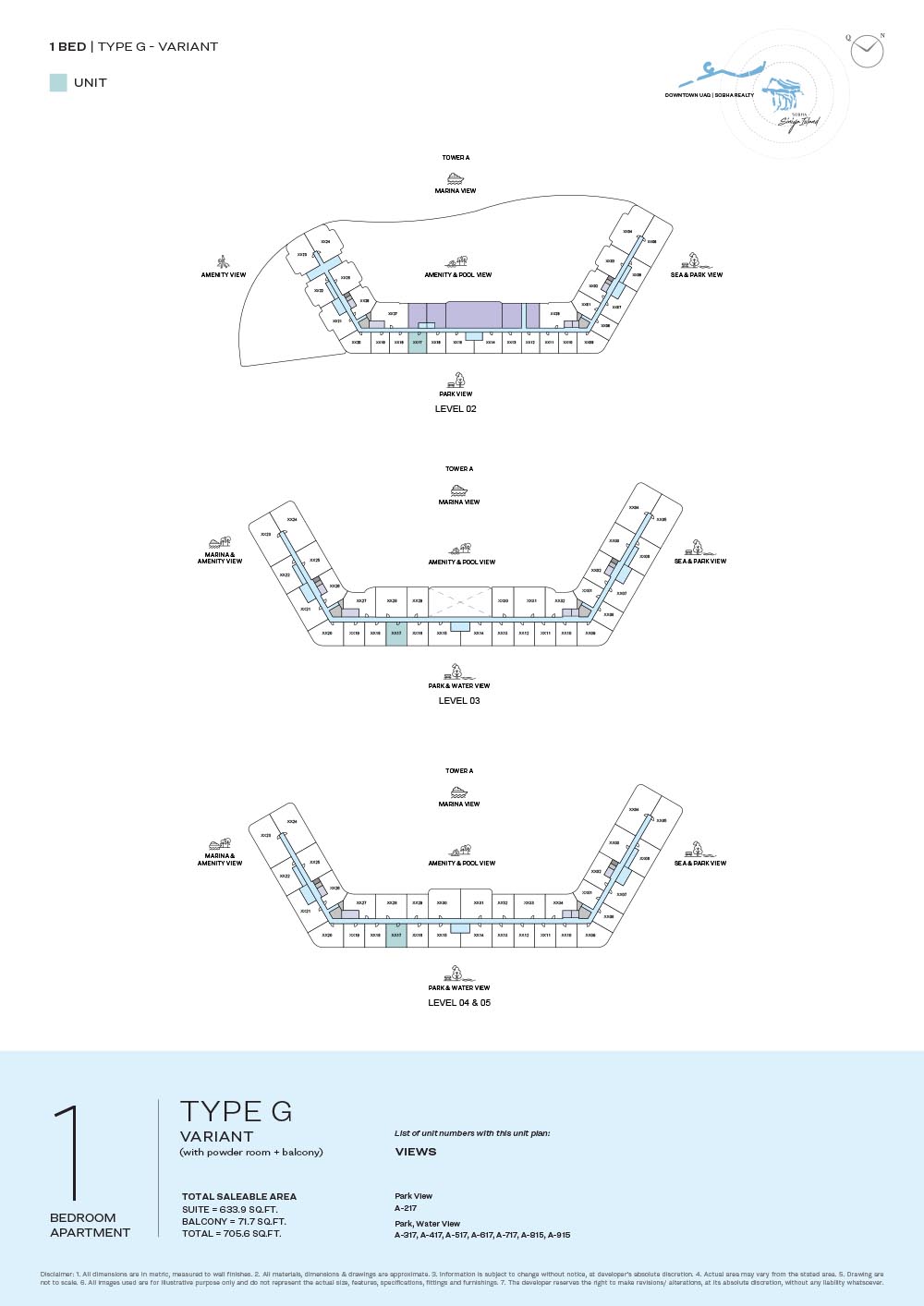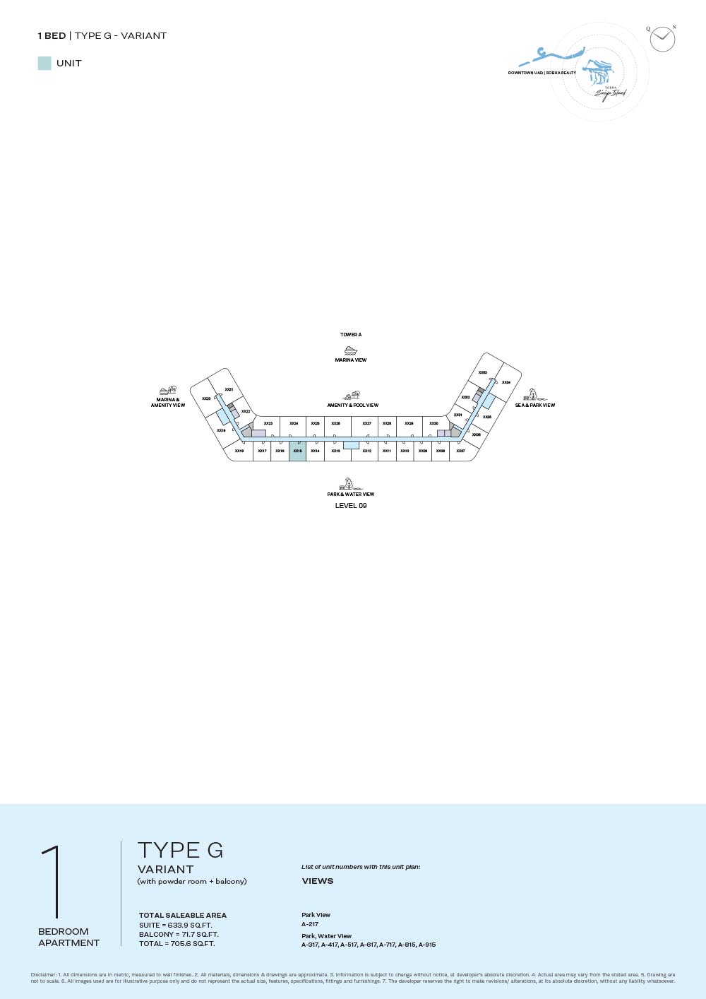 | Tower A | 1 Bedroom | 09th Level (Type G-Variant) | 705.60 Sq Ft | Click Here |
