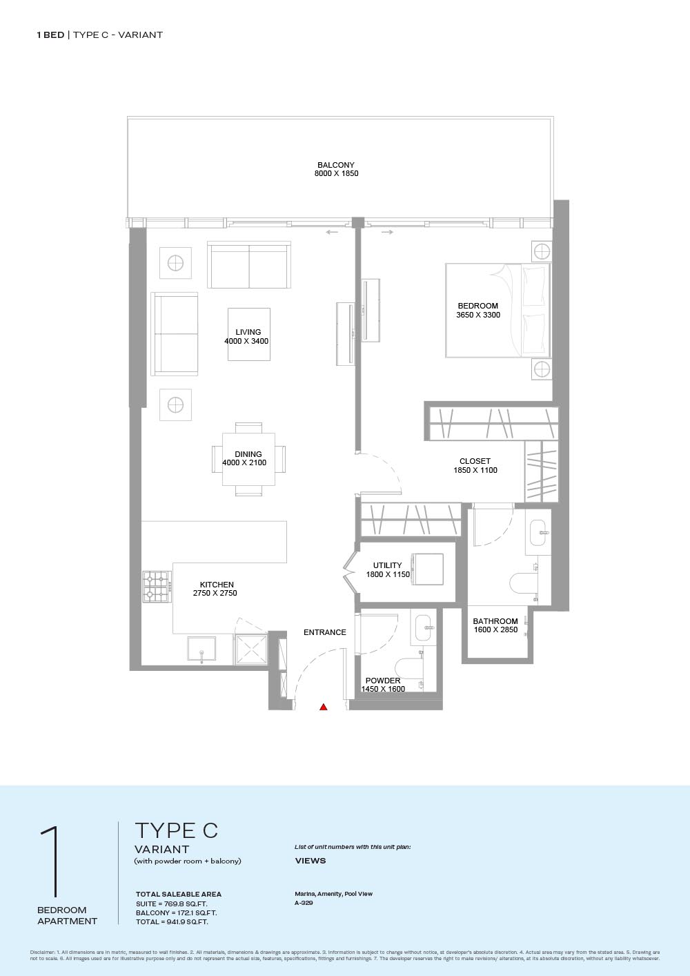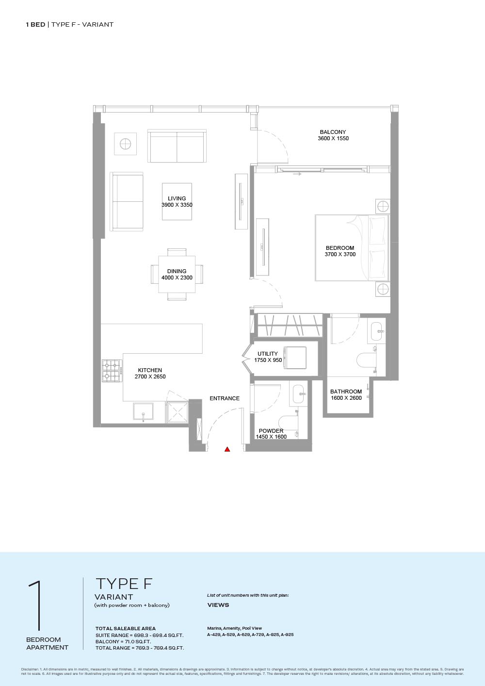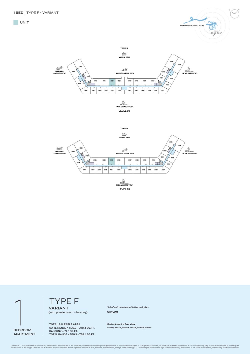 | Tower A | 1 Bedroom | 08th & 09th Level (Type F-Variant) | 769.40 Sq Ft | Click Here |