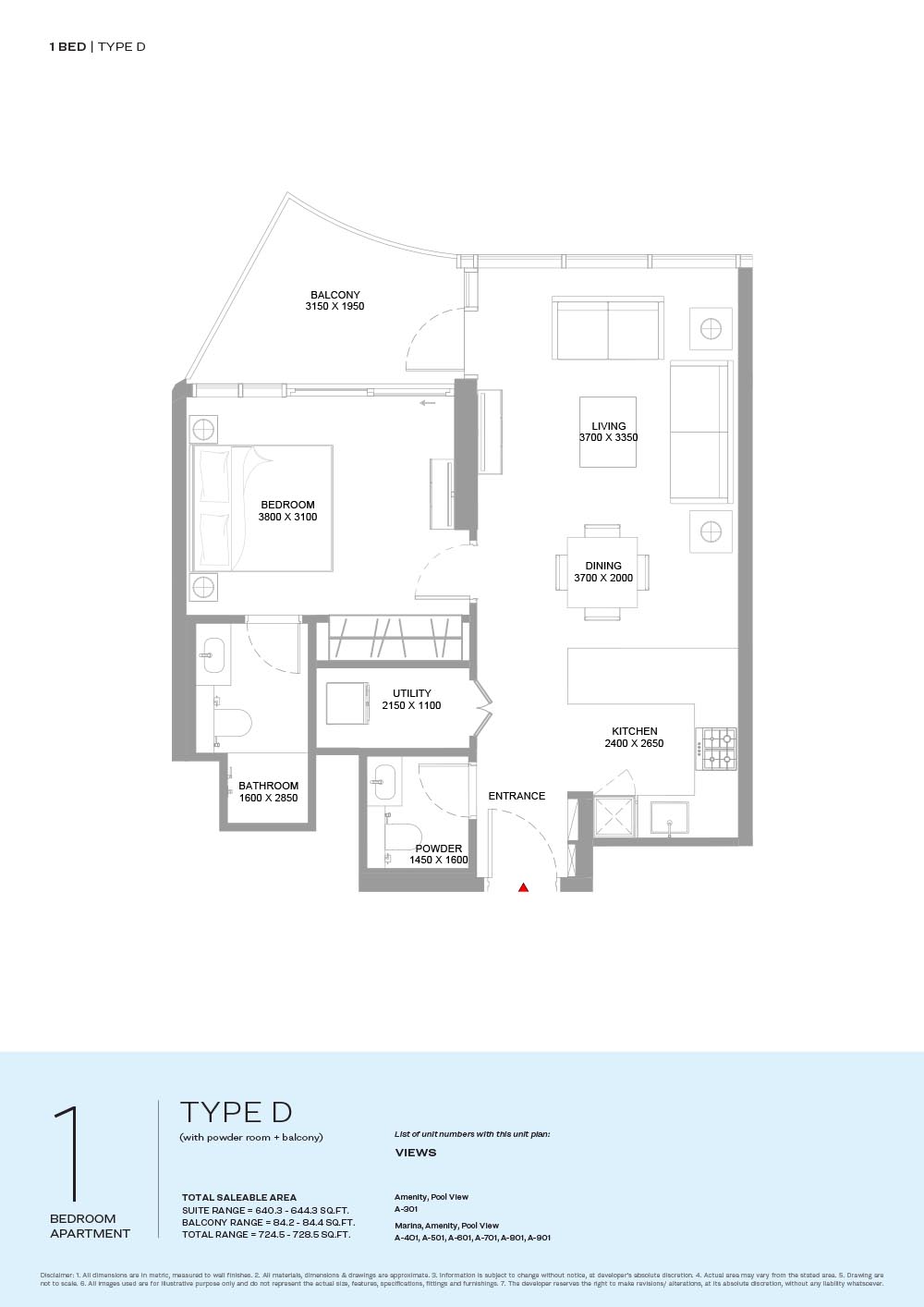 | Tower A | 1 Bedroom | 03rd-06th Level (Type D) | 728.50 Sq Ft | Click Here |