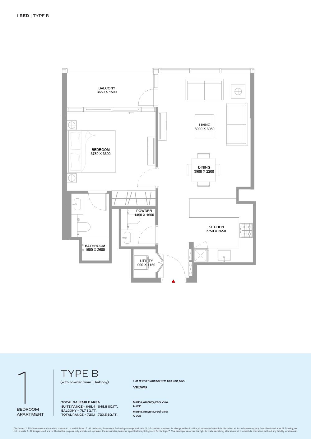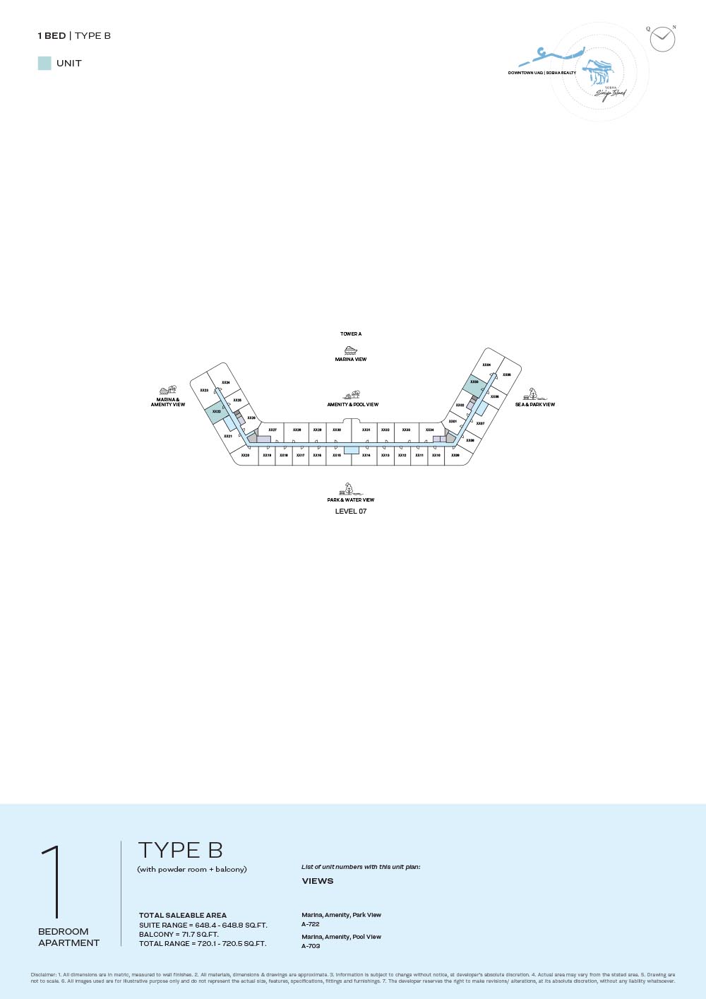 | Tower A | 1 Bedroom | 07th Level (Type B) | 720.50 Sq Ft | Click Here |