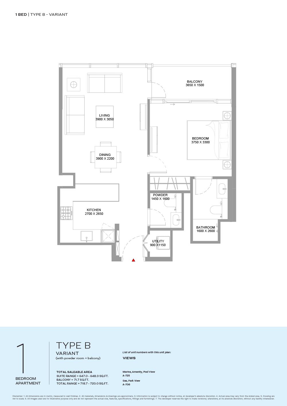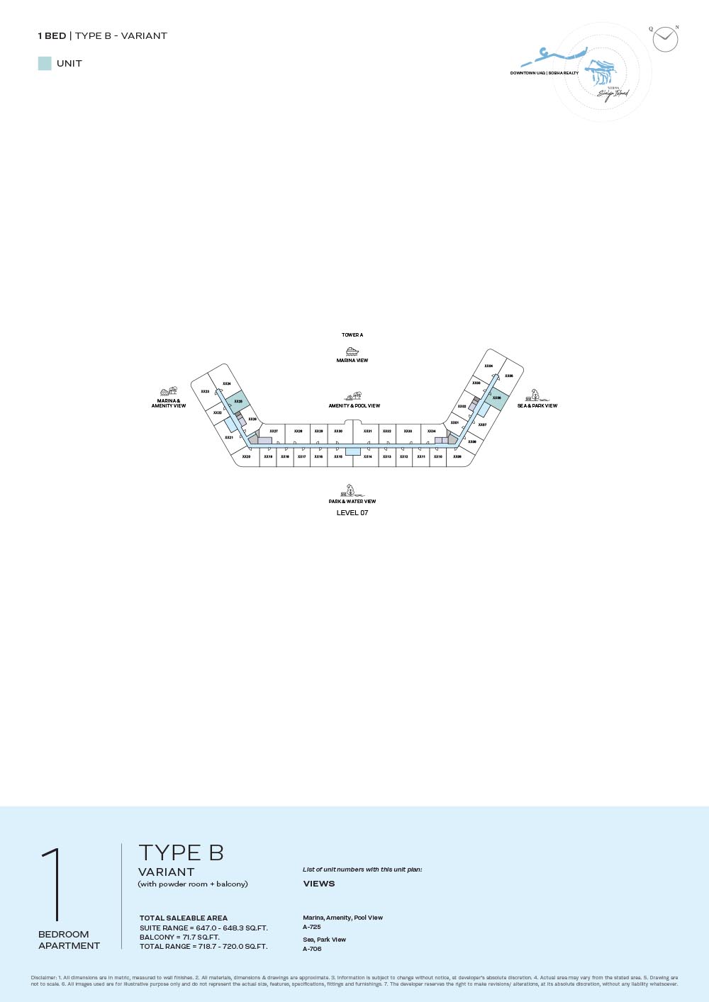 | Tower A | 1 Bedroom | 07th Level (Type B-Variant) | 720.00 Sq Ft | Click Here |