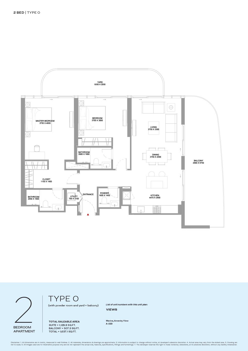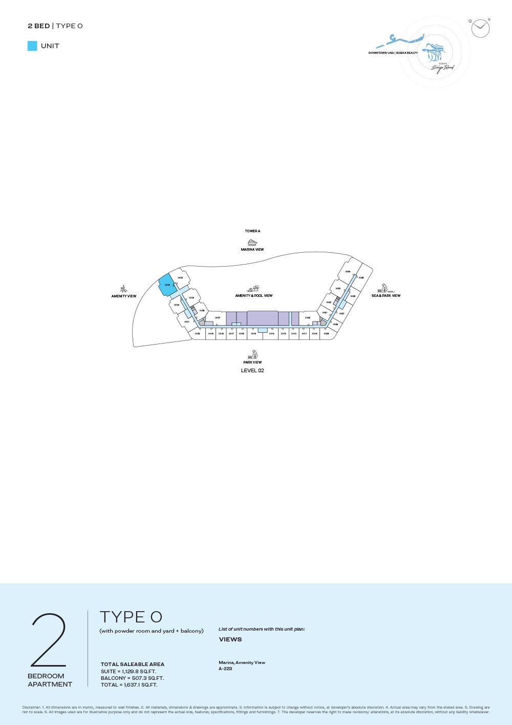 | Tower A | 2 Bedrooms | 02nd Level (Type O) | 1637.10 Sq Ft | Click Here |