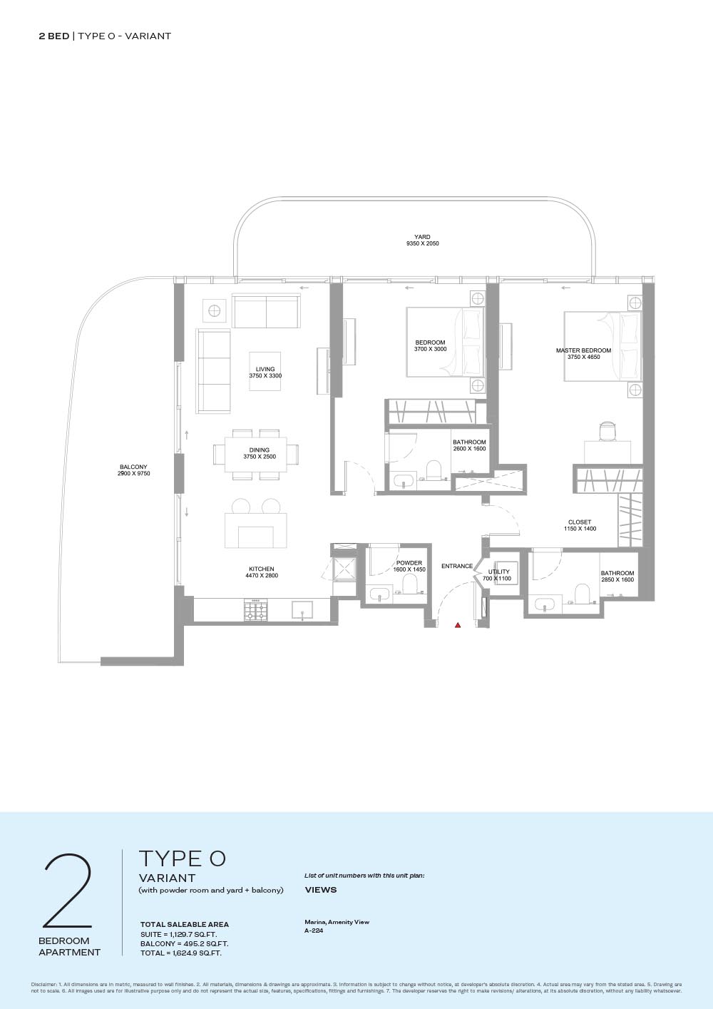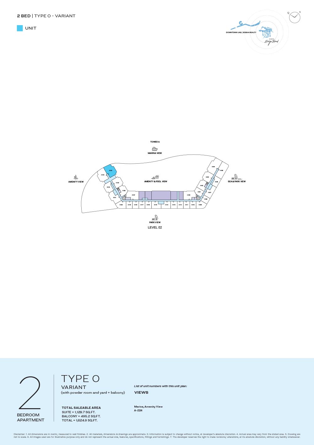 | Tower A | 2 Bedrooms | 02nd Level (Type O-Variant) | 1624.90 Sq Ft | Click Here |