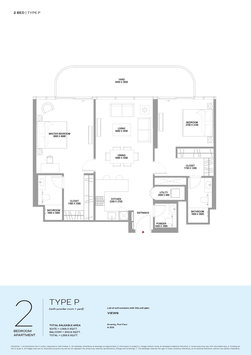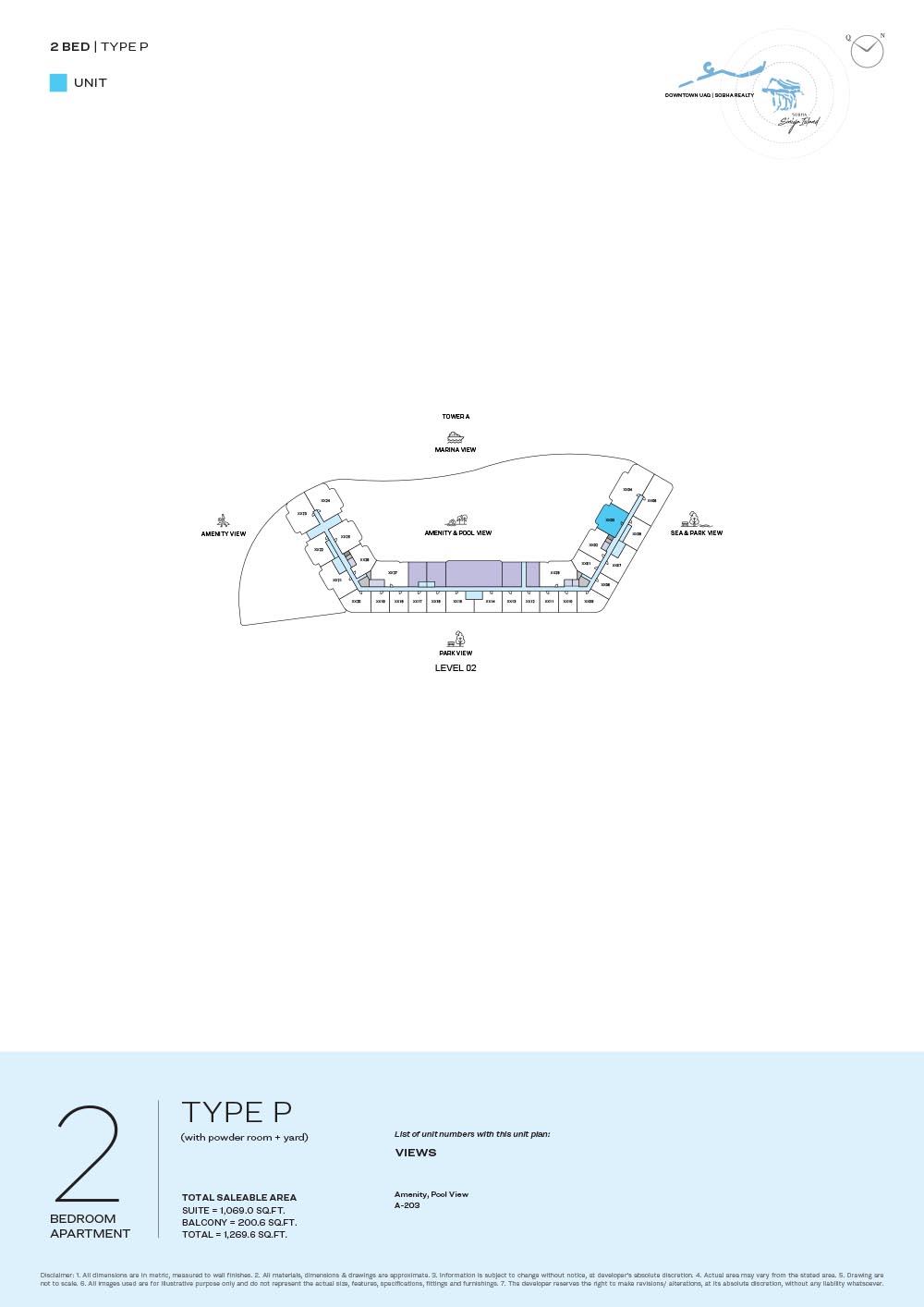 | Tower A | 2 Bedrooms | 02nd Level (Type P) | 1269.60 Sq Ft | Click Here |