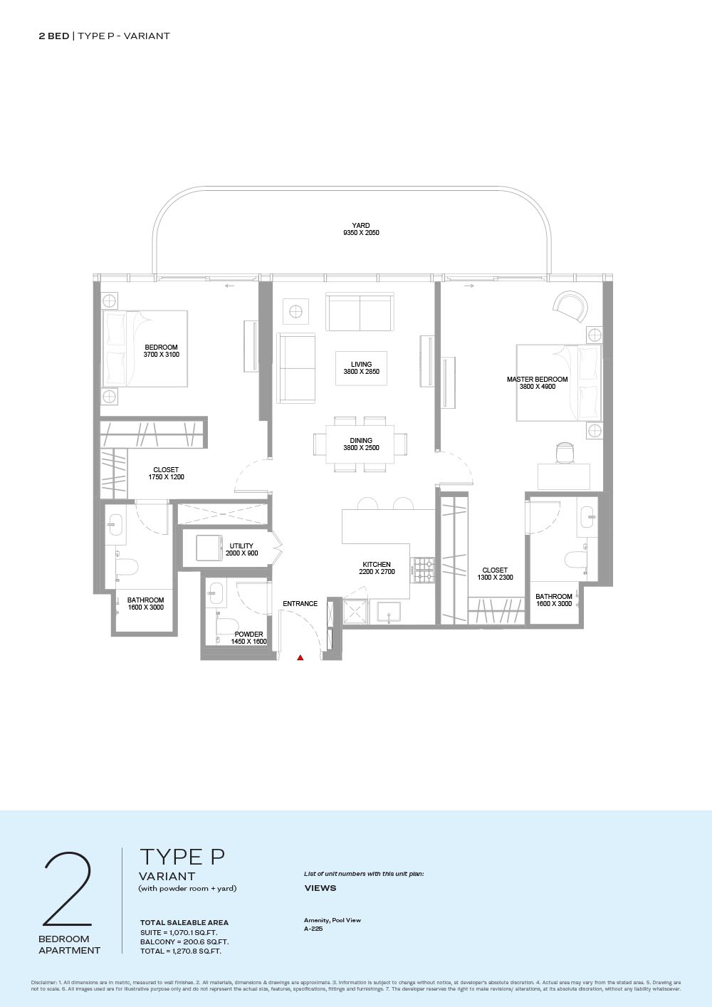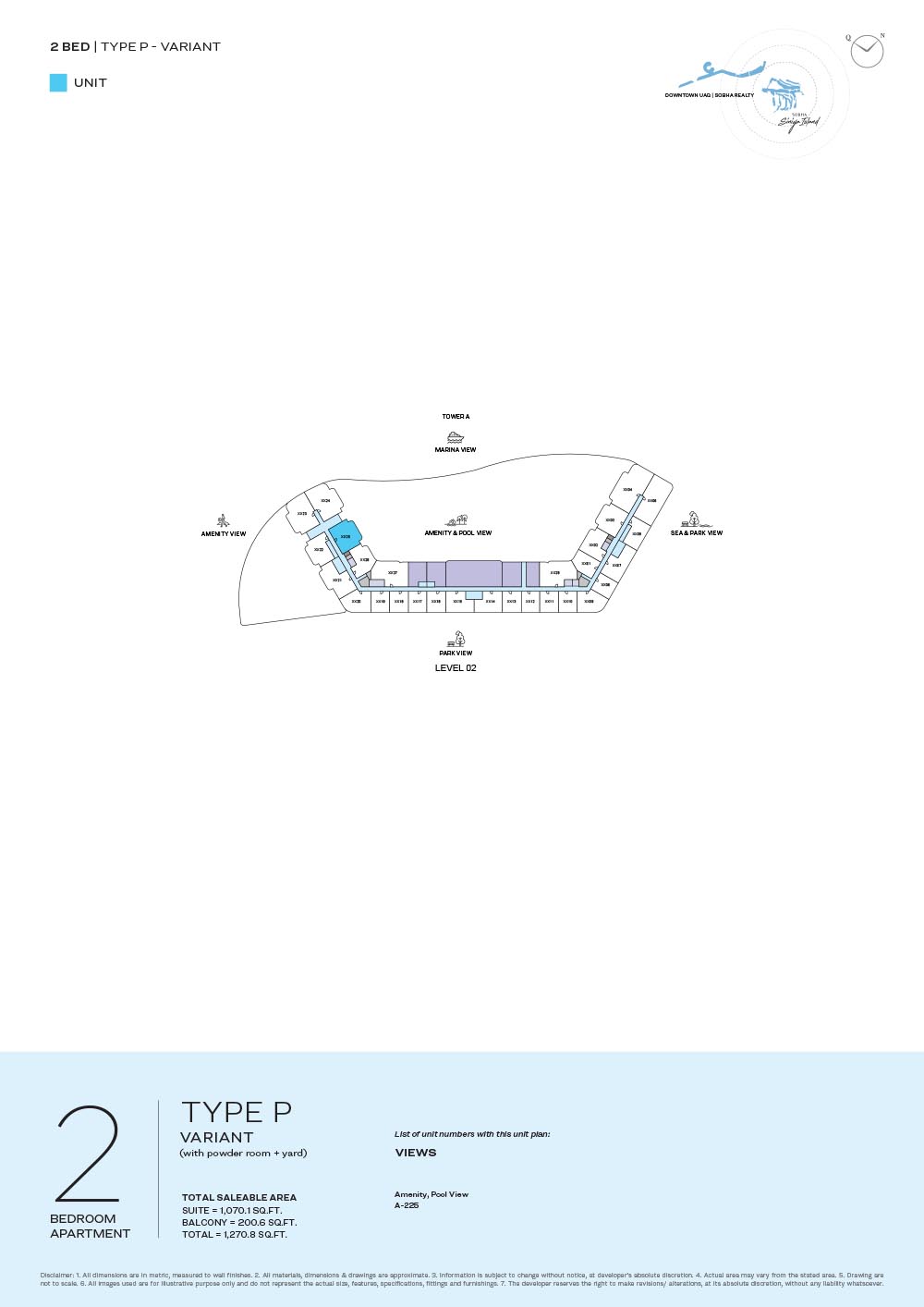 | Tower A | 2 Bedrooms | 02nd Level (Type P-Variant) | 1270.80 Sq Ft | Click Here |