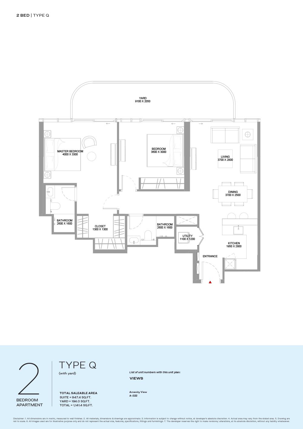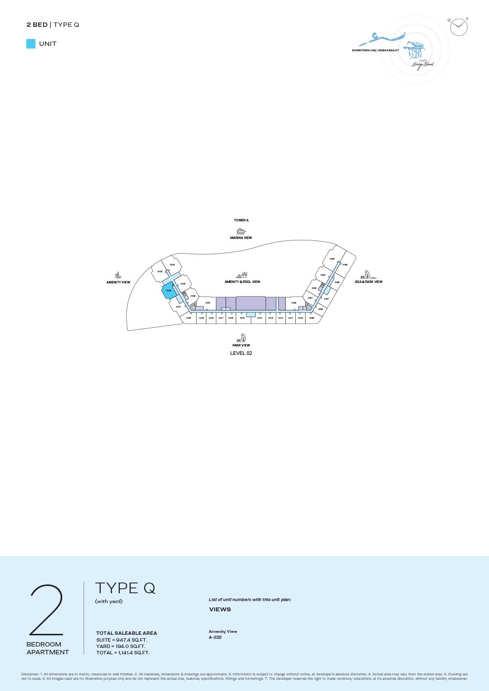 | Tower A | 2 Bedrooms | 02nd Level (Type Q) | 1141.40 Sq Ft | Click Here |