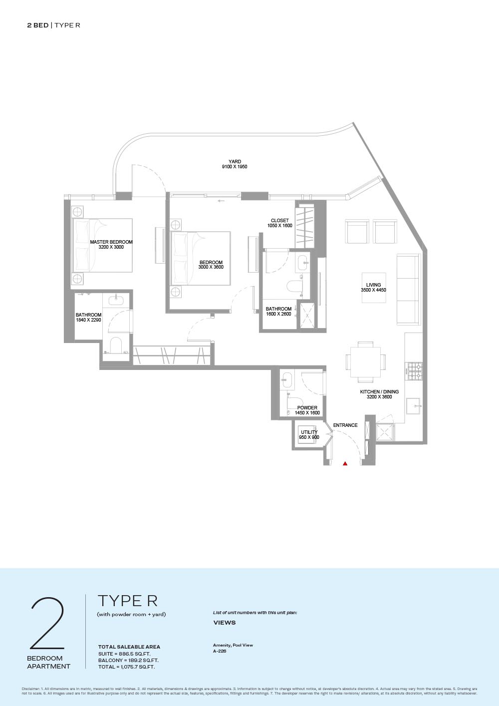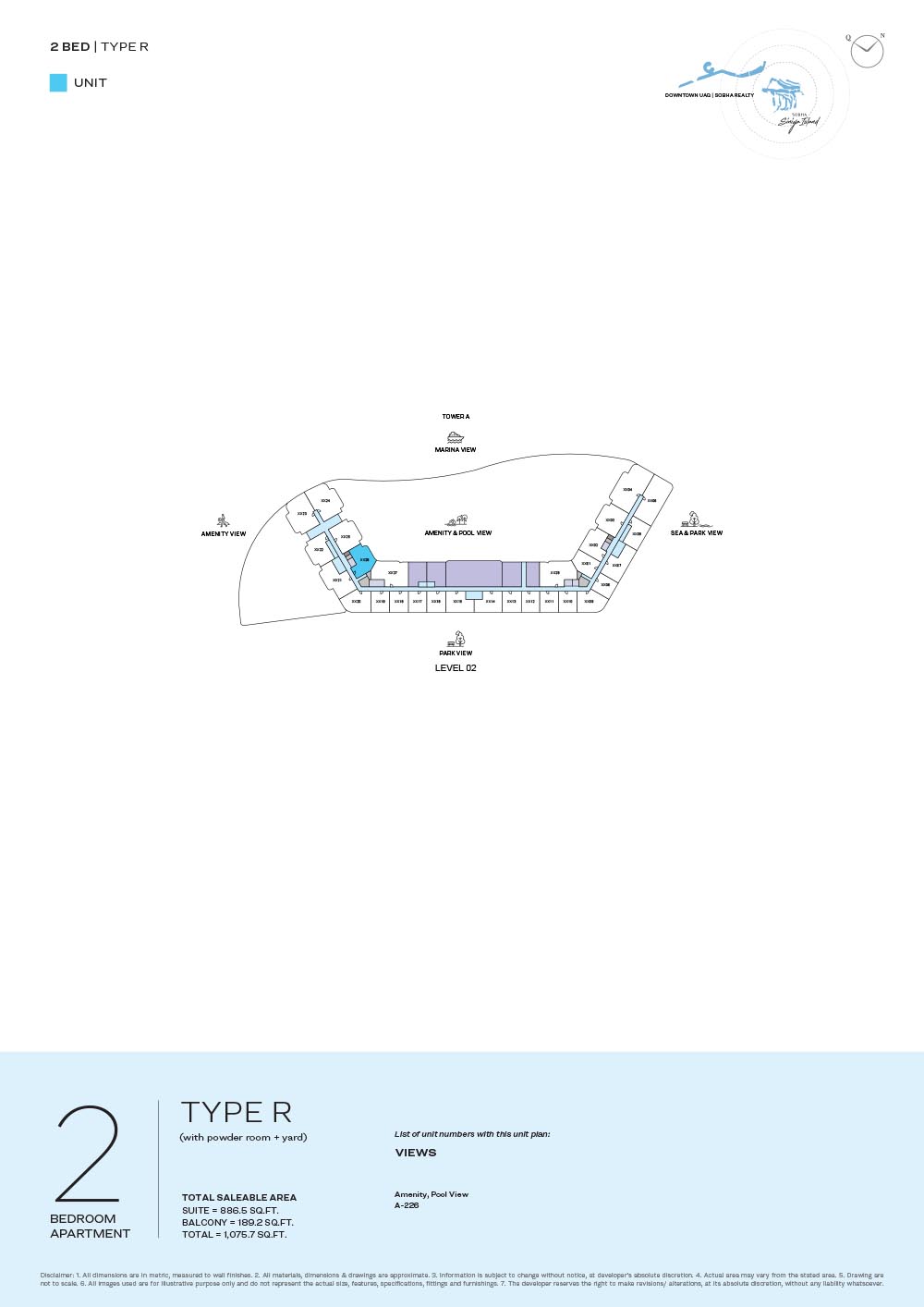 | Tower A | 2 Bedrooms | 02nd Level (Type R) | 1075.70 Sq Ft | Click Here |