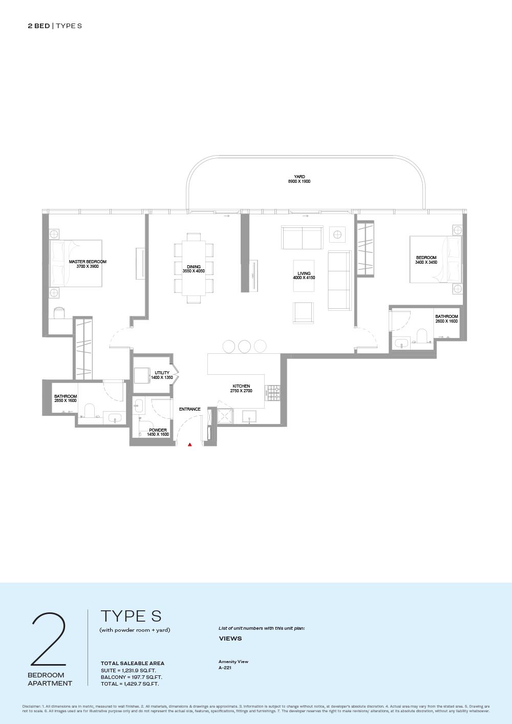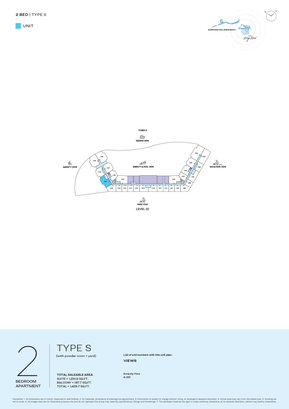 | Tower A | 2 Bedrooms | 02nd Level (Type S) | 1429.70 Sq Ft | Click Here |