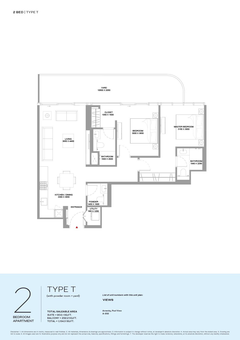 | Tower A | 2 Bedrooms | 02nd Level (Type T) | 1134.30 Sq Ft | Click Here |