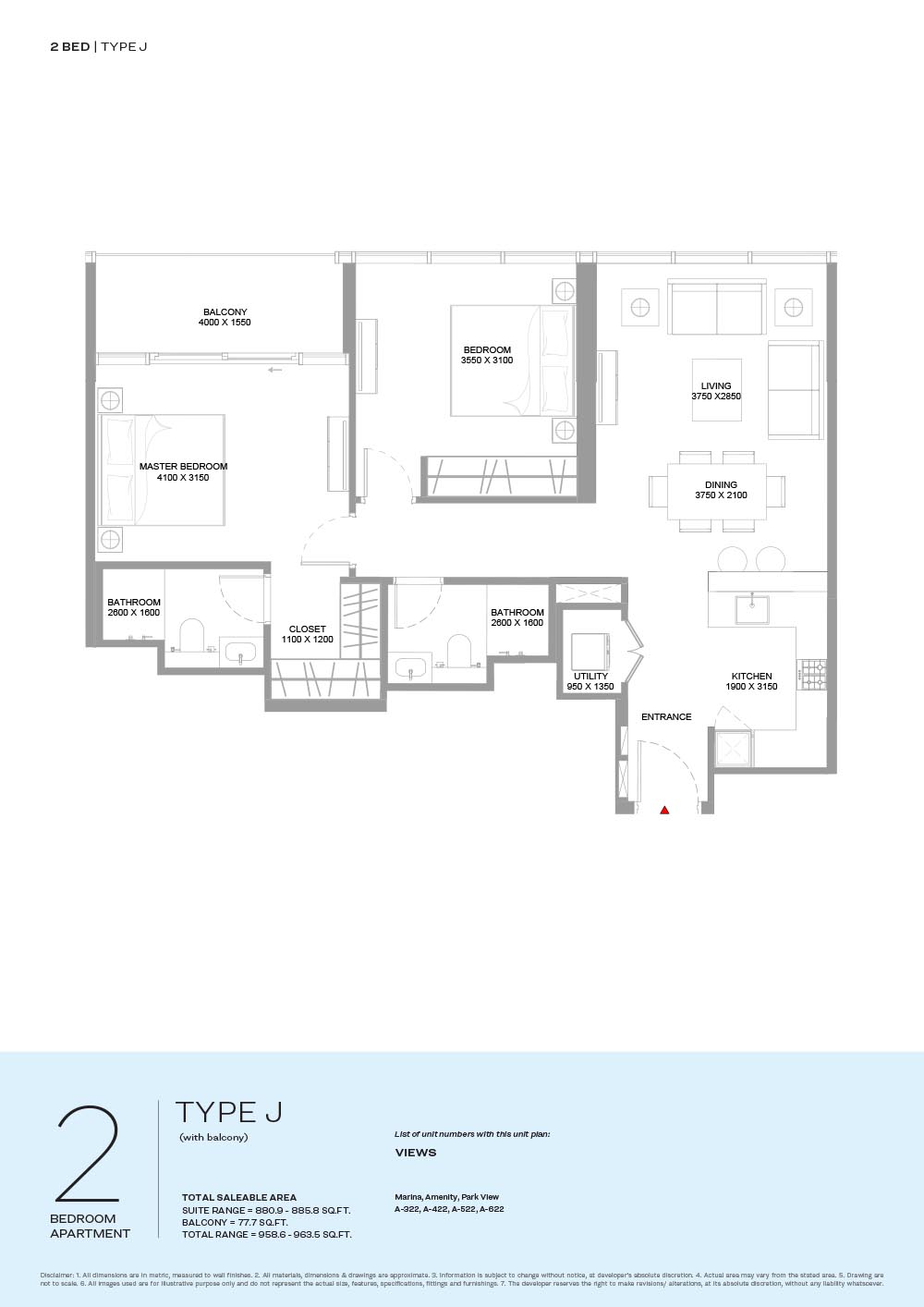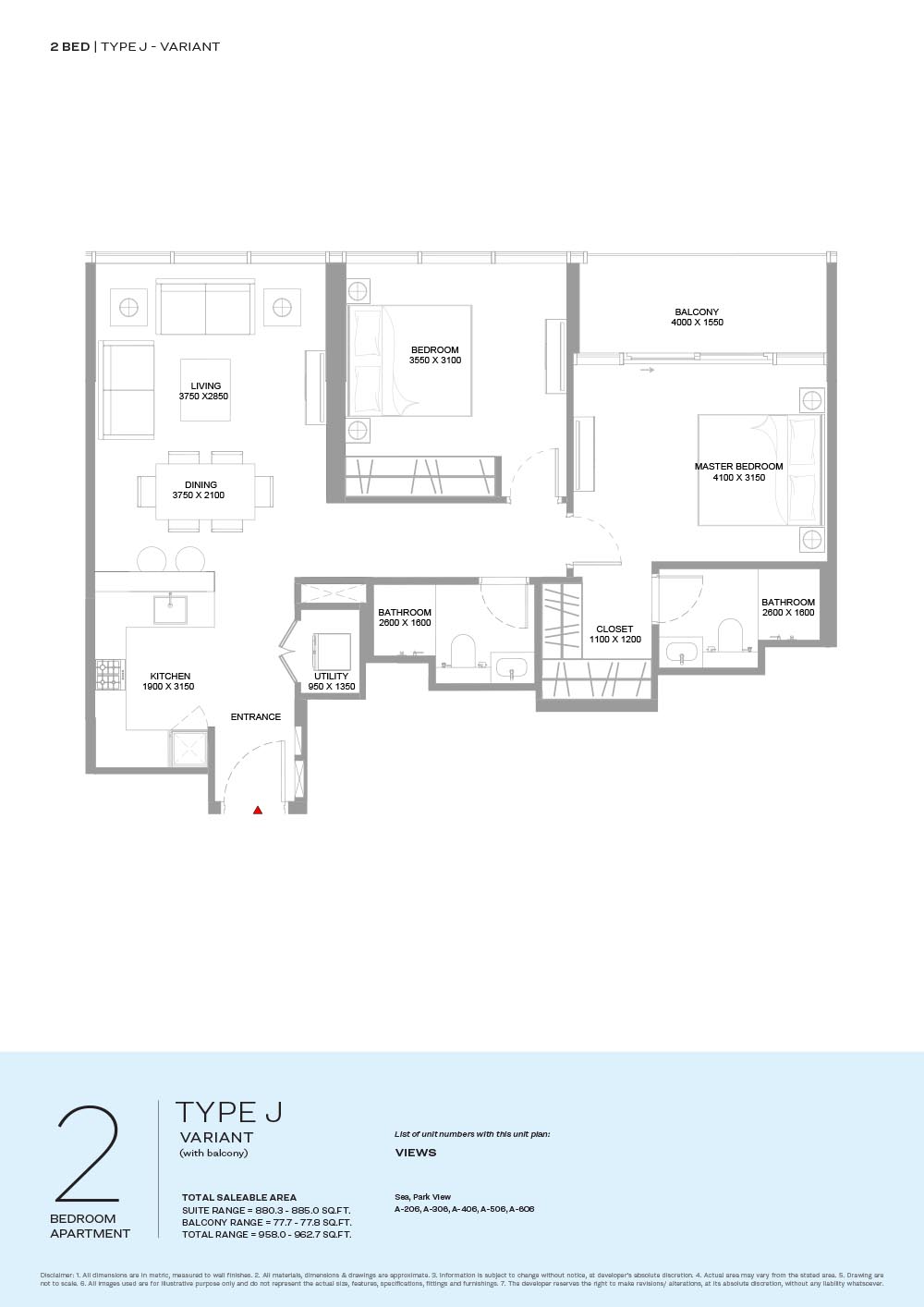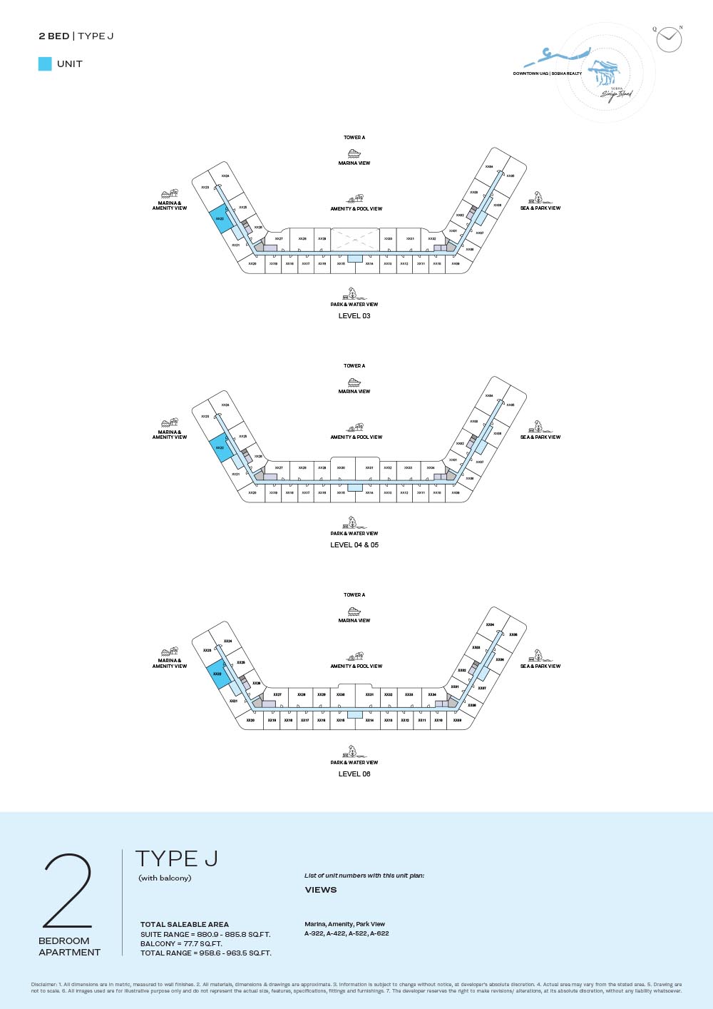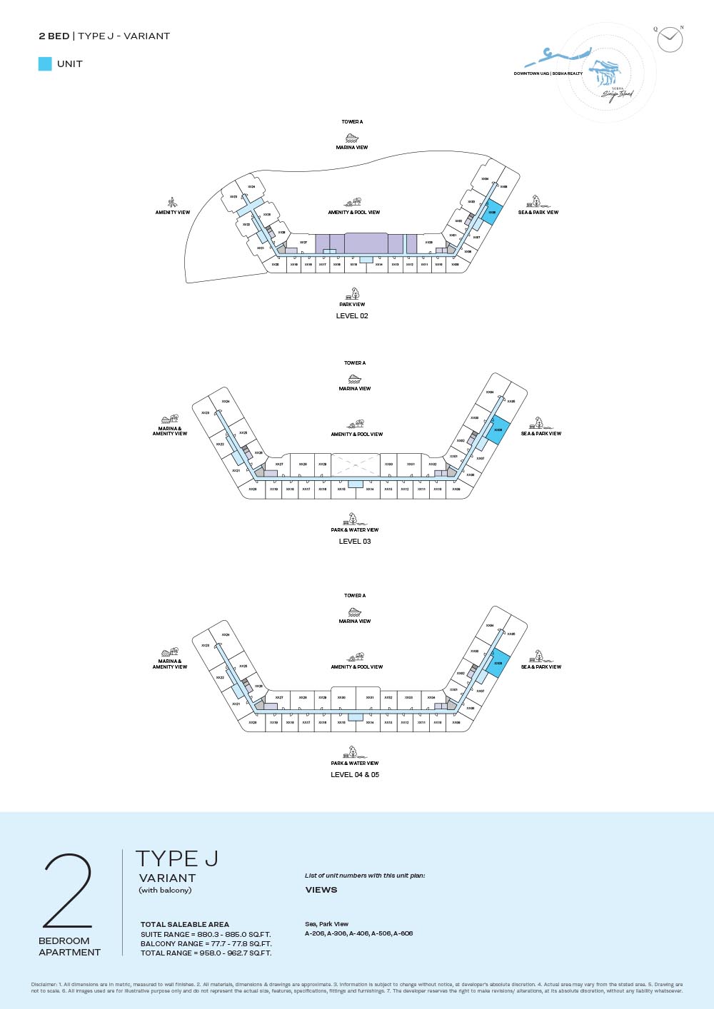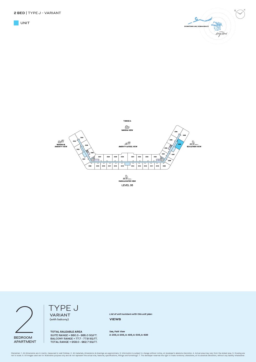 | Tower A | 2 Bedrooms | 06th Level (Type J-Variant) | 962.70 Sq Ft | Click Here |
