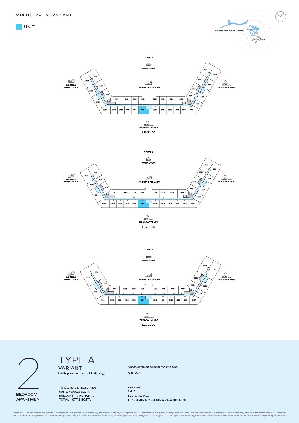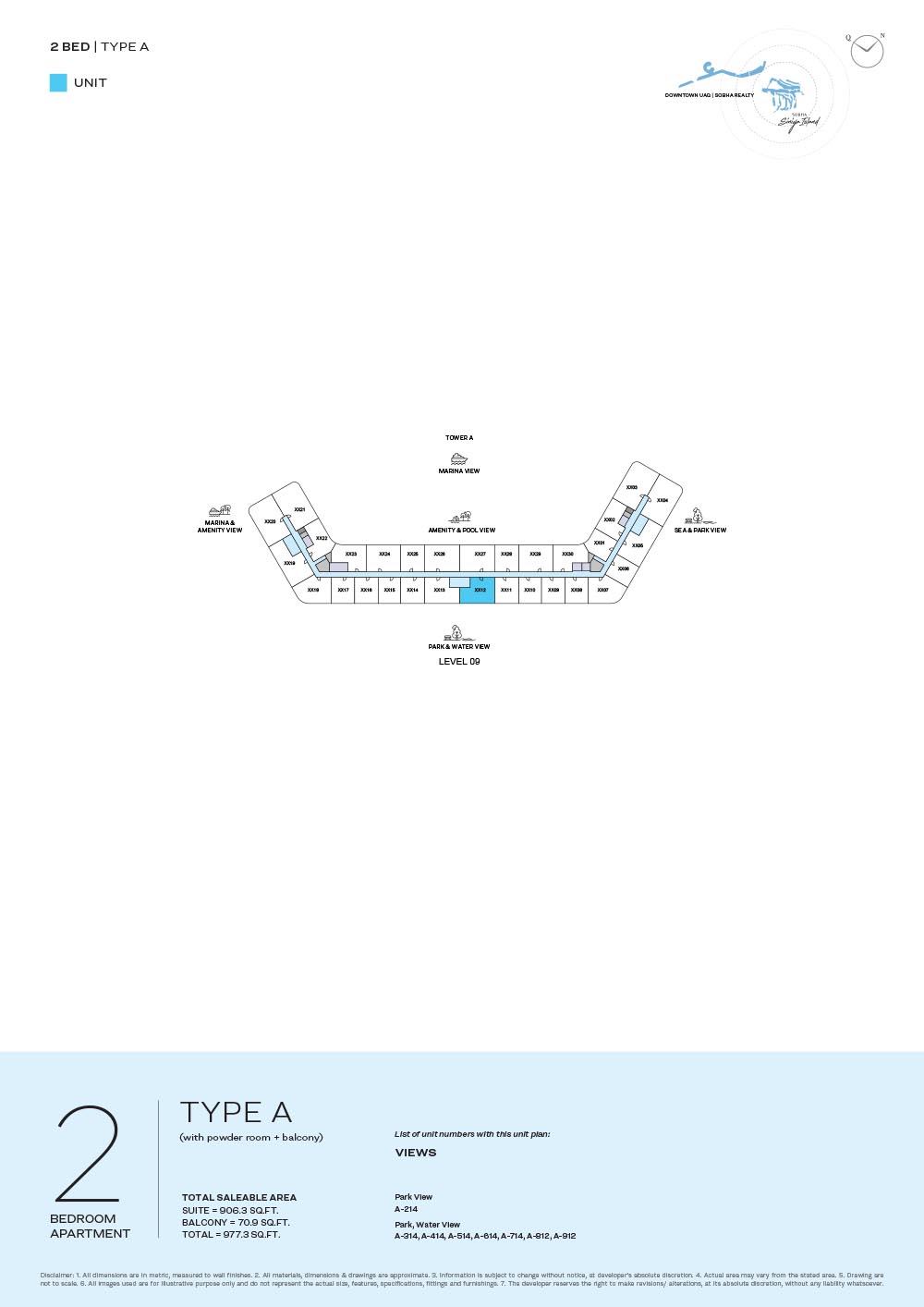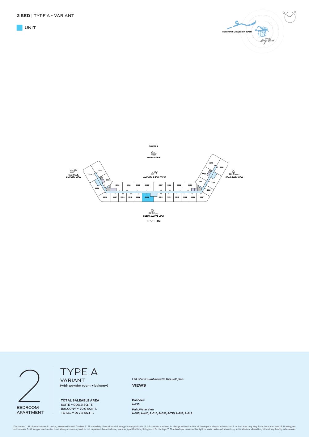 | Tower A | 2 Bedrooms | 09th Level (Type A) | 977.30 Sq Ft | Click Here |
