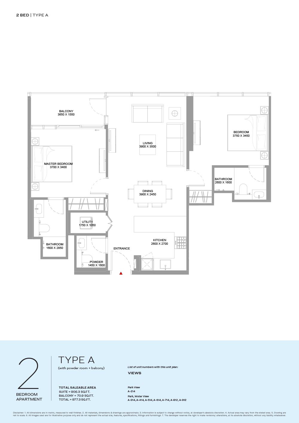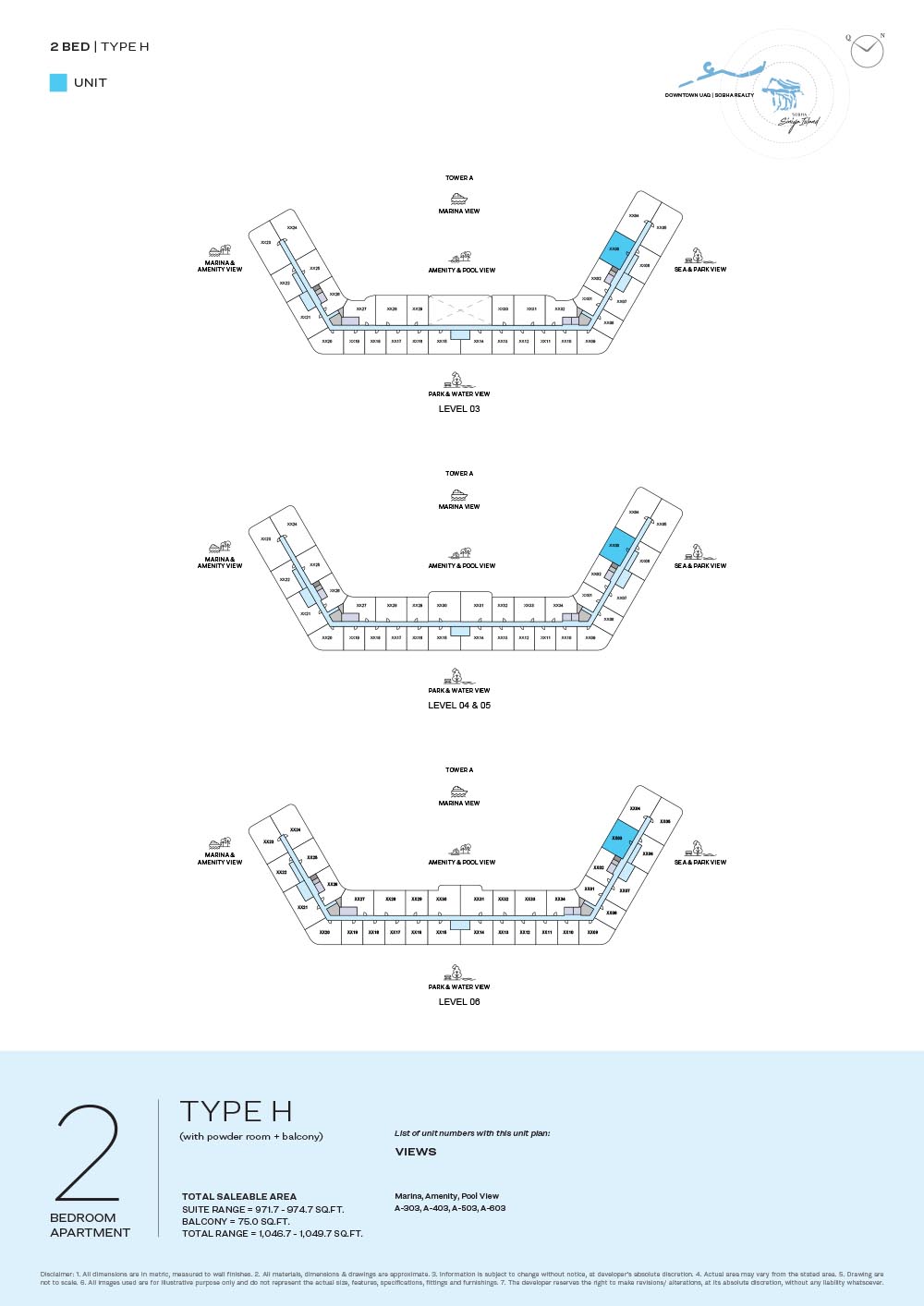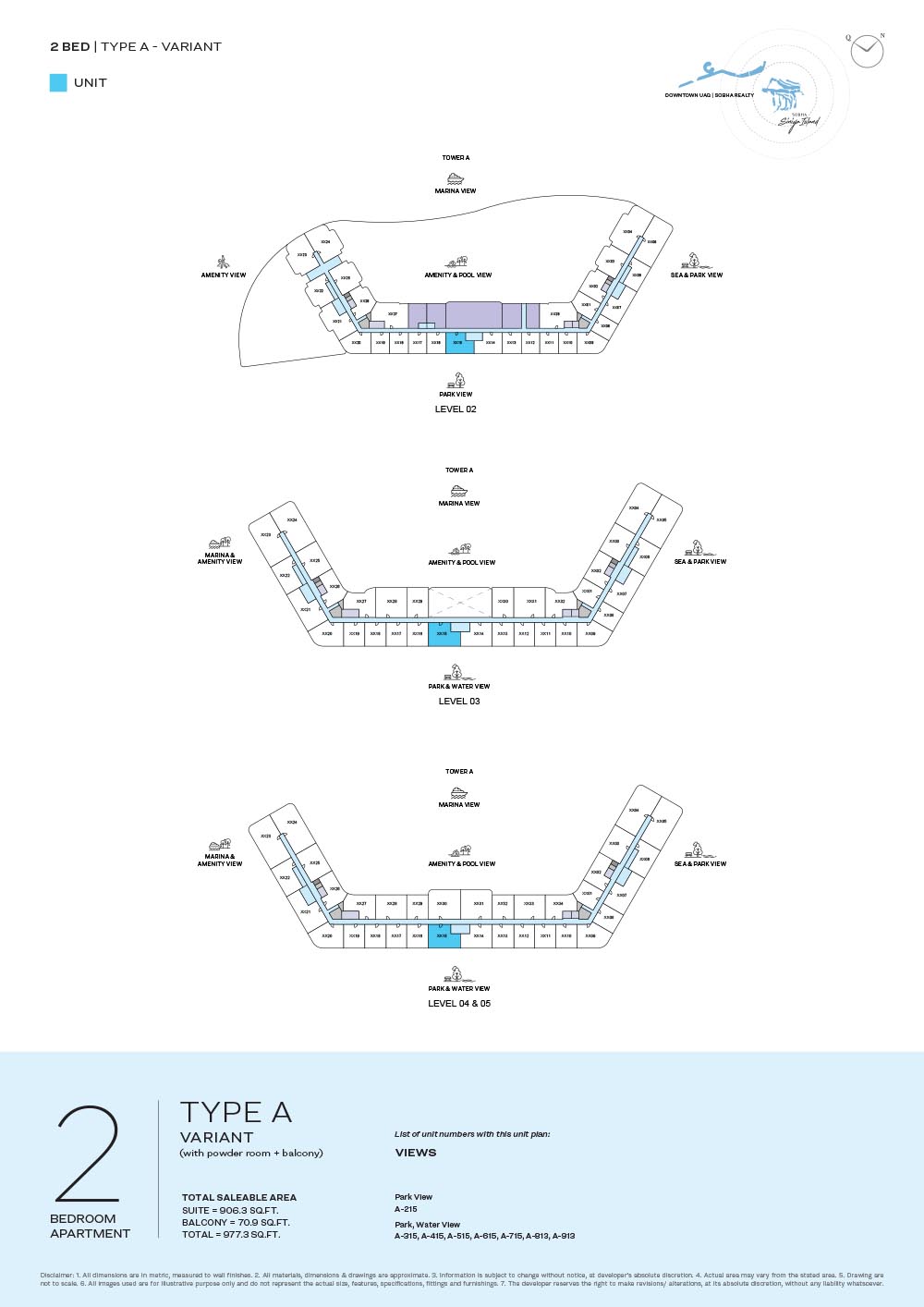 | Tower A | 2 Bedrooms | 09th Level (Type A) | 977.30 Sq Ft | Click Here |