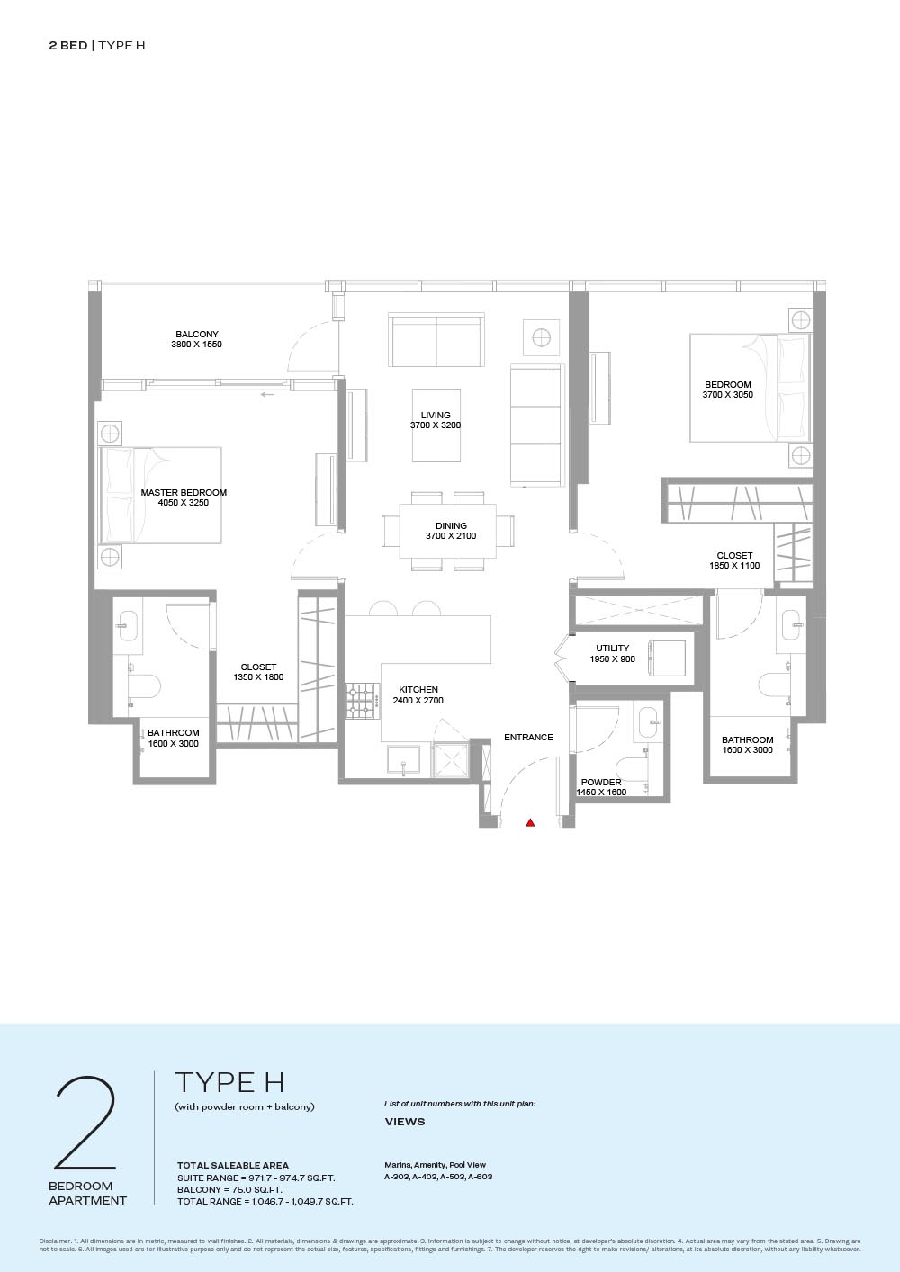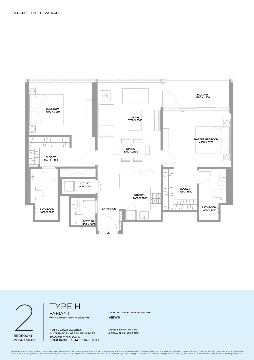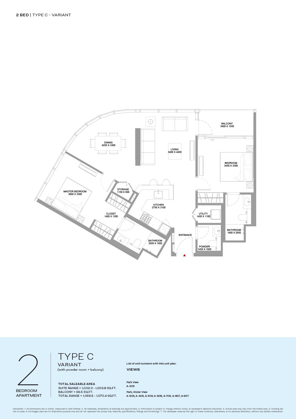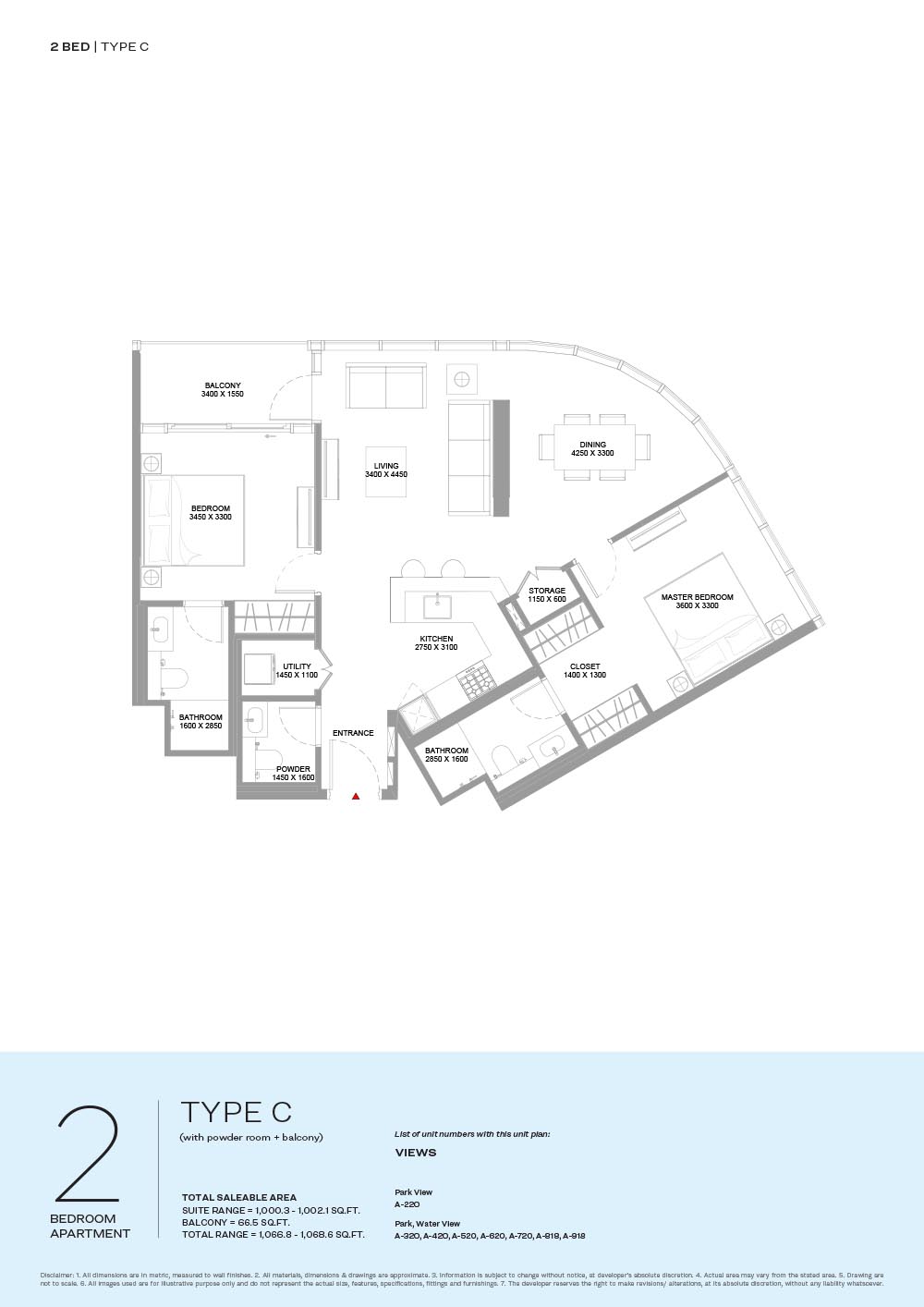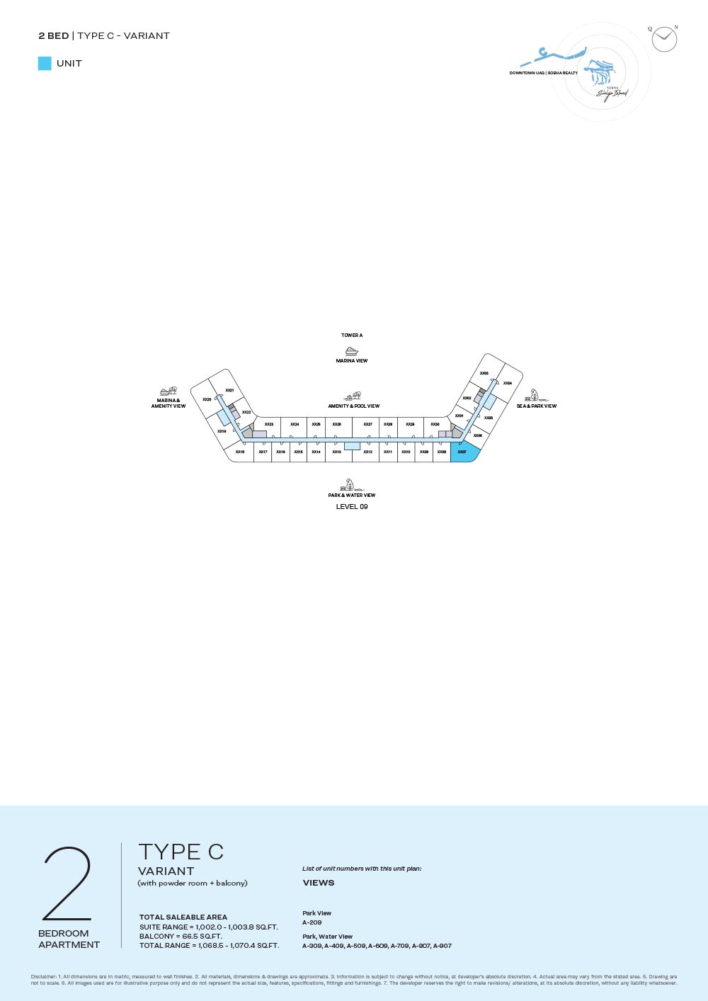 | Tower A | 2 Bedrooms | 09th Level (Type C-Variant) | 1070.40 Sq Ft | Click Here |