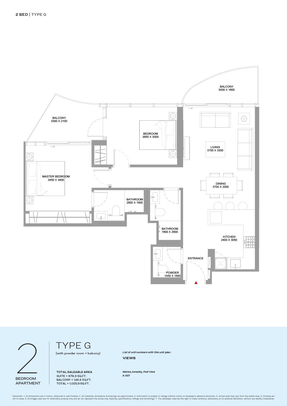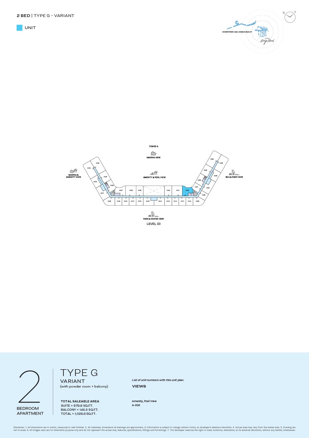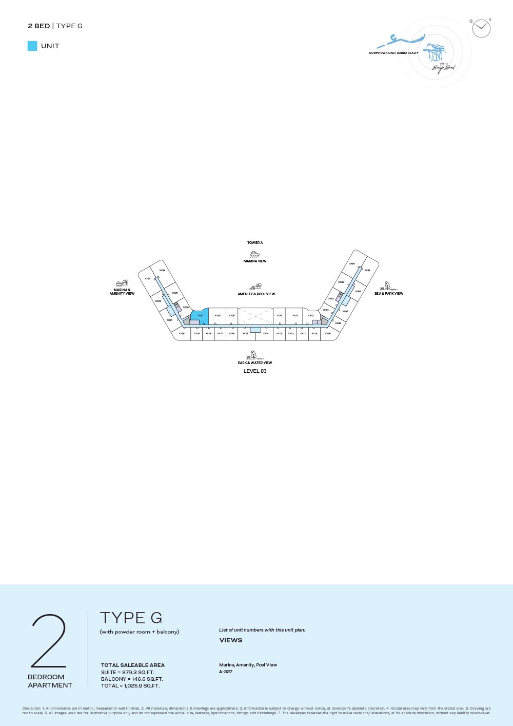 | Tower A | 2 Bedrooms | 03rd Level (Type G) | 1025.90 Sq Ft | Click Here |