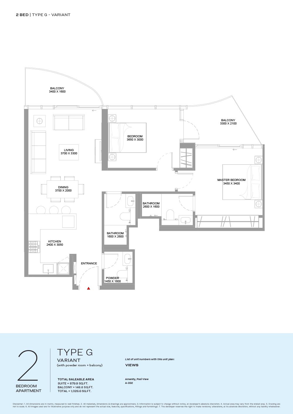 | Tower A | 2 Bedrooms | 03rd Level (Type G-Variant) | 1026.60 Sq Ft | Click Here |