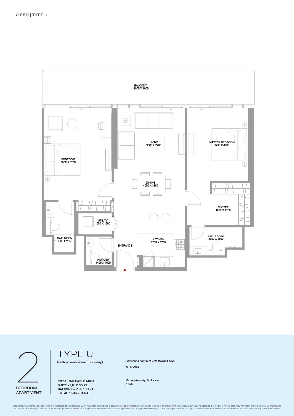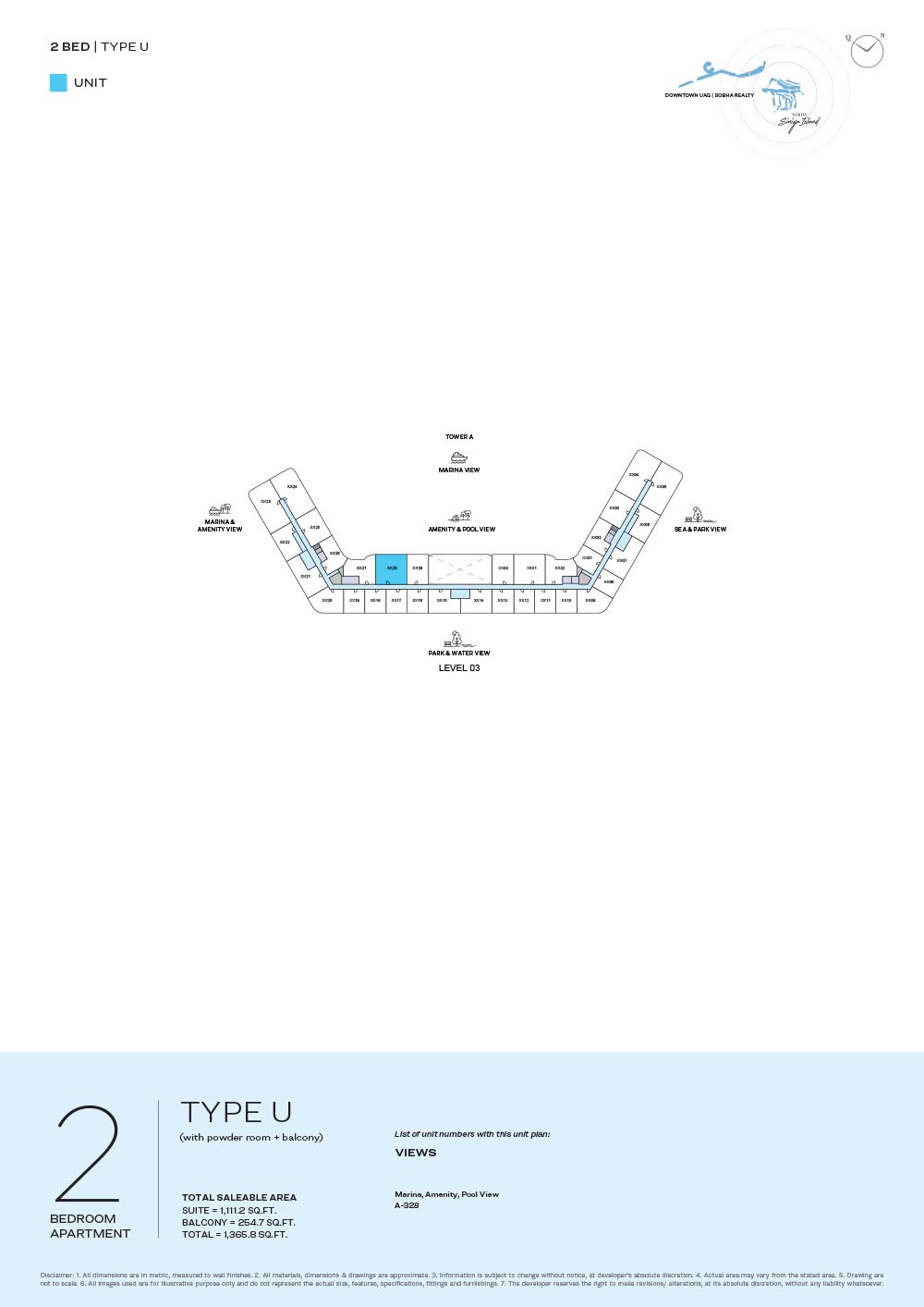 | Tower A | 2 Bedrooms | 03rd Level (Type U) | 1365.80 Sq Ft | Click Here |
