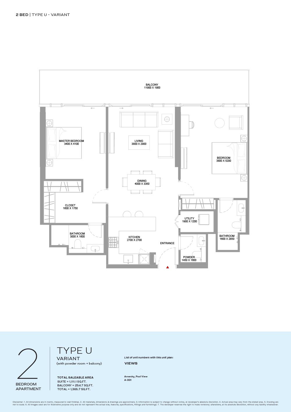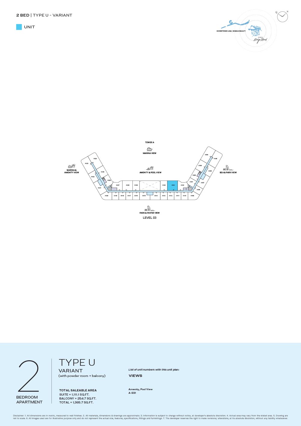 | Tower A | 2 Bedrooms | 03rd Level (Type U-Variant) | 1365.70 Sq Ft | Click Here |
