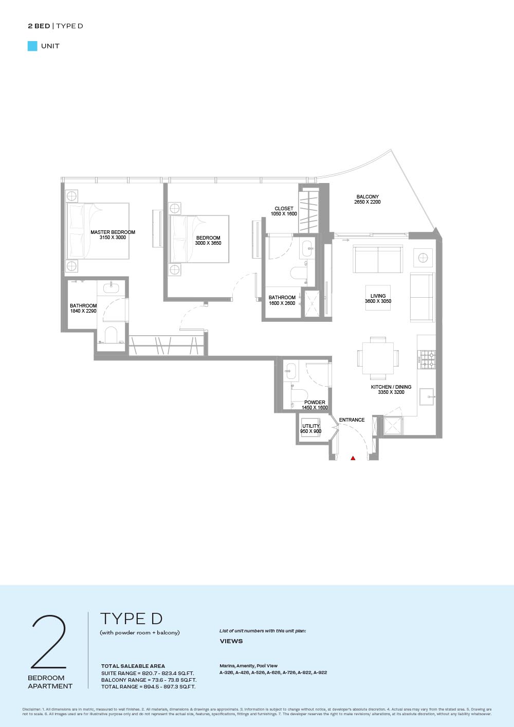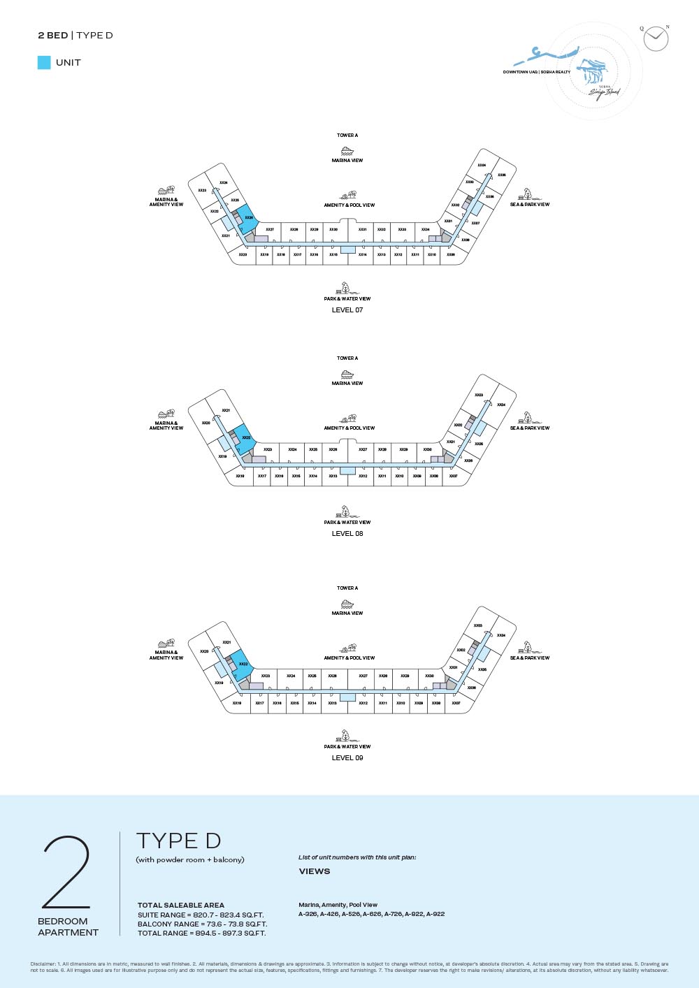 | Tower A | 2 Bedrooms | 07th-09th Level (Type D) | 897.30 Sq Ft | Click Here |