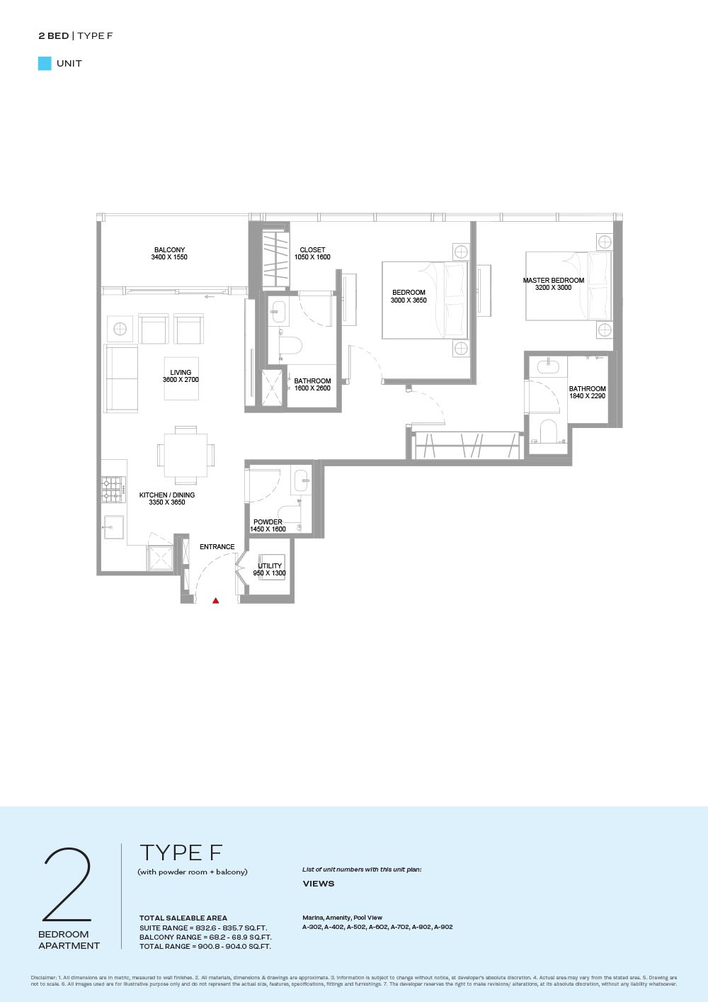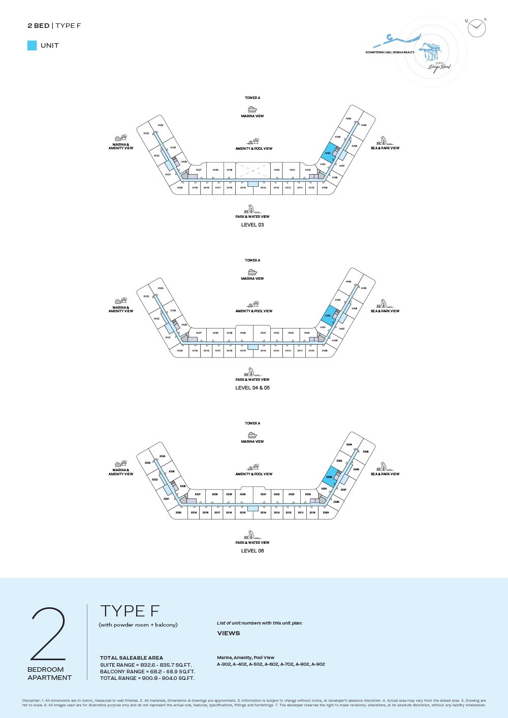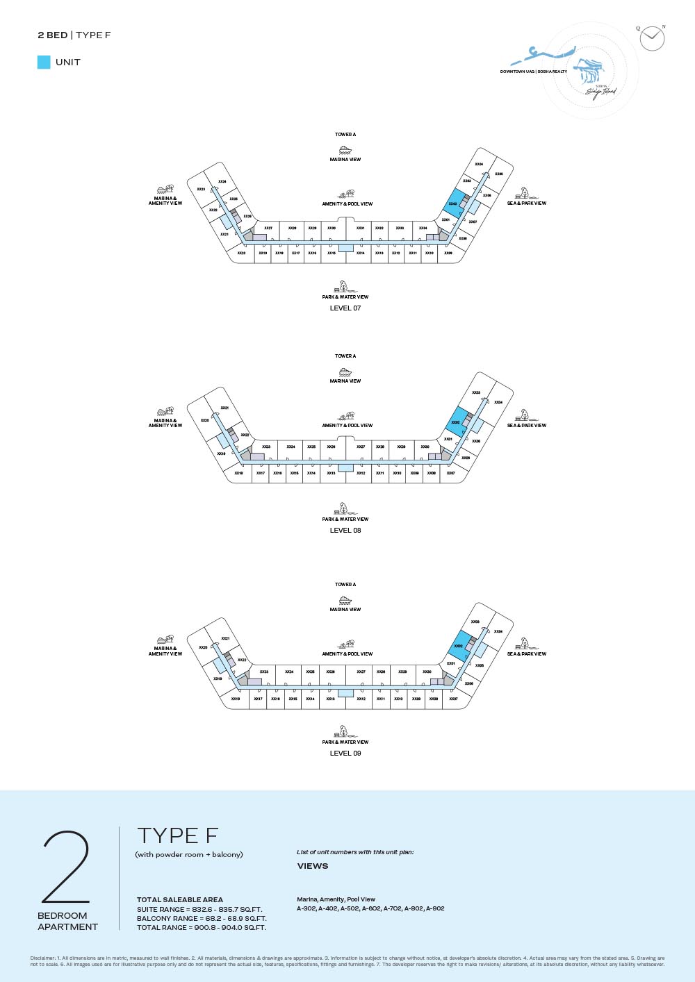 | Tower A | 2 Bedrooms | 07th-09th Level (Type F) | 904.00 Sq Ft | Click Here |