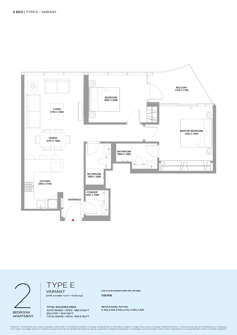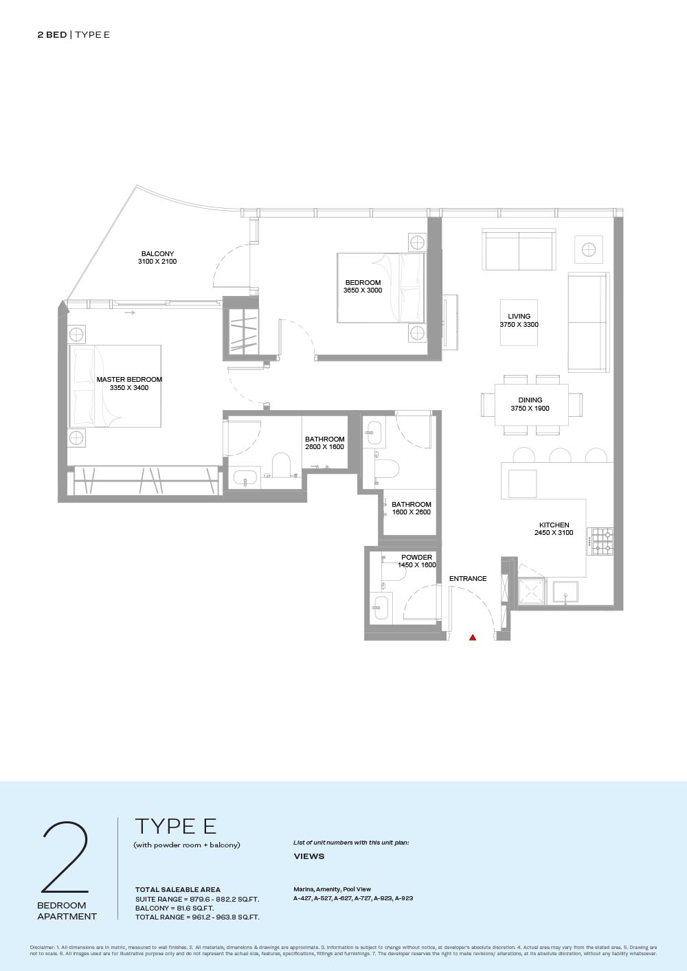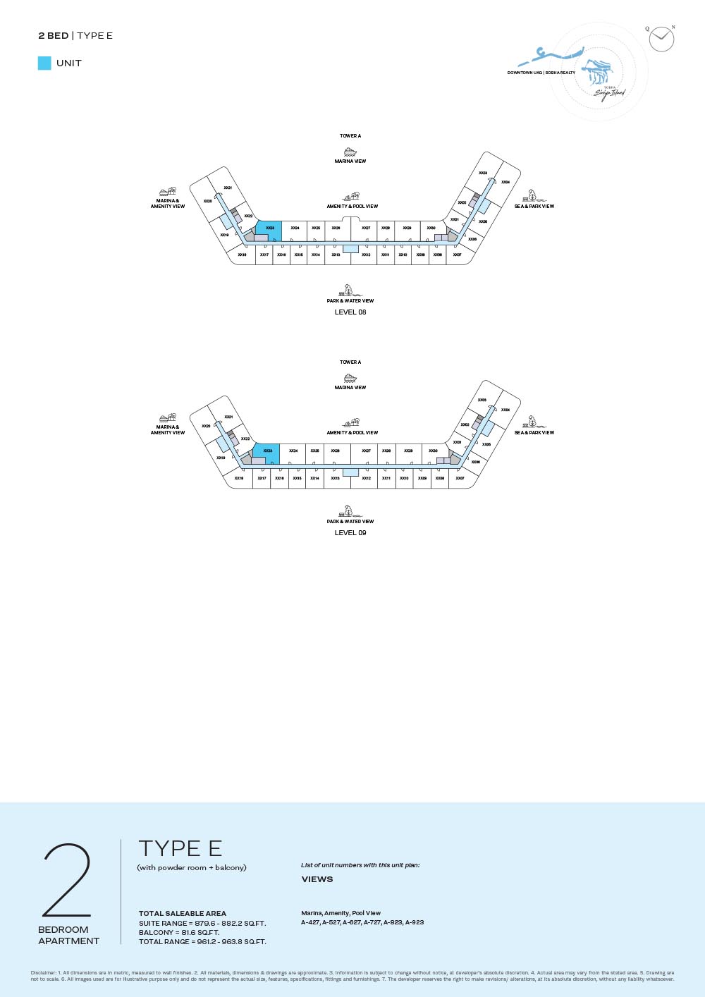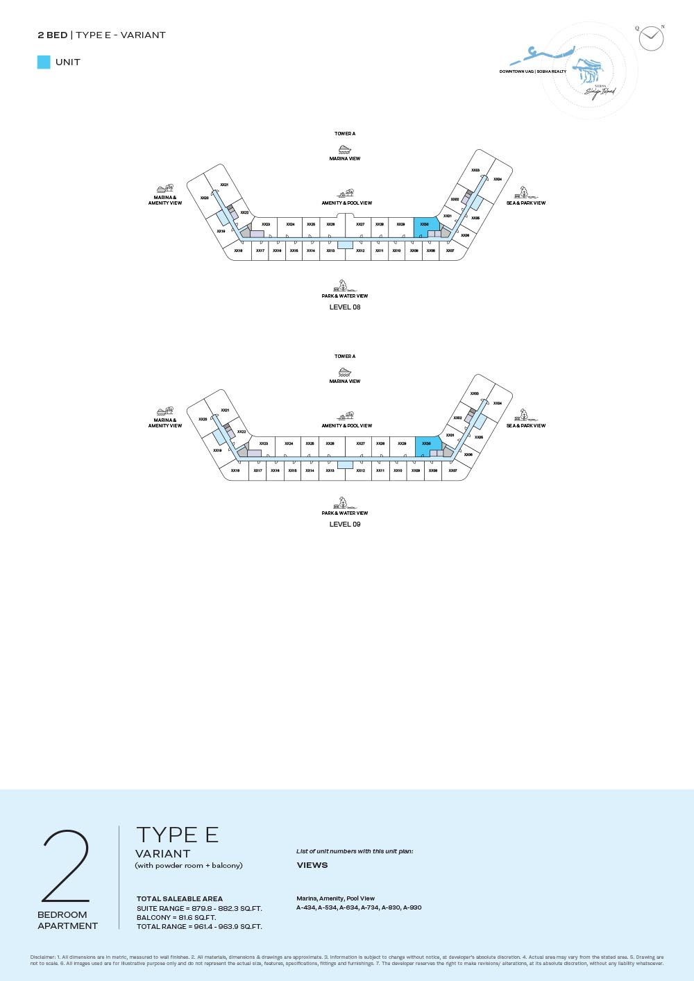 | Tower A | 2 Bedrooms | 08th & 09th Level (Type E-Variant) | 963.90 Sq Ft | Click Here |