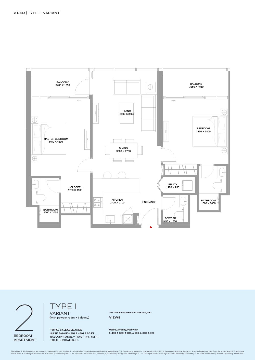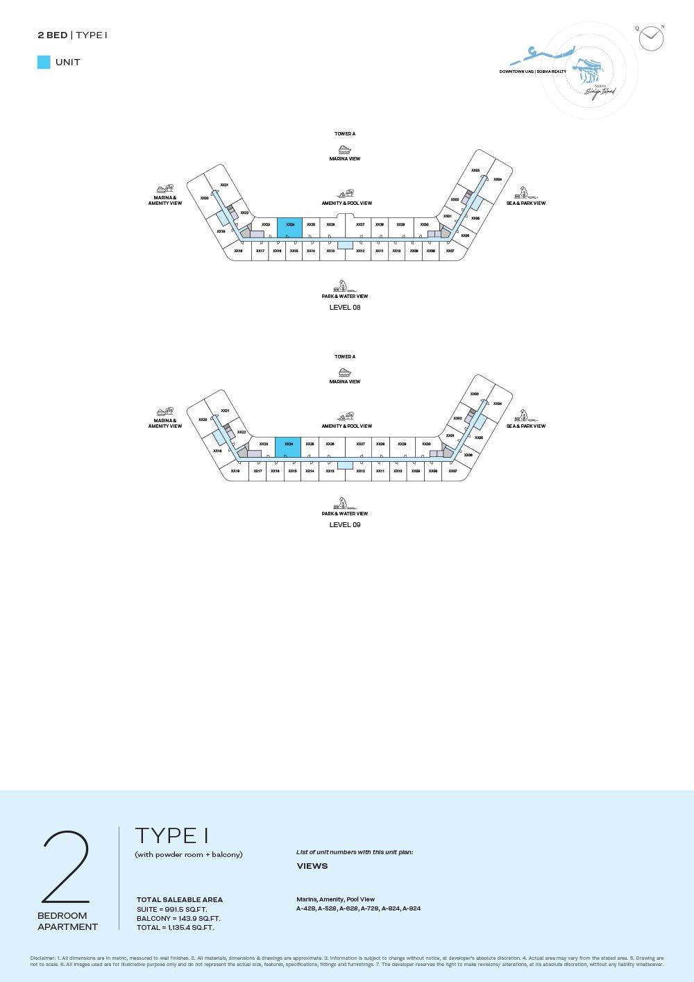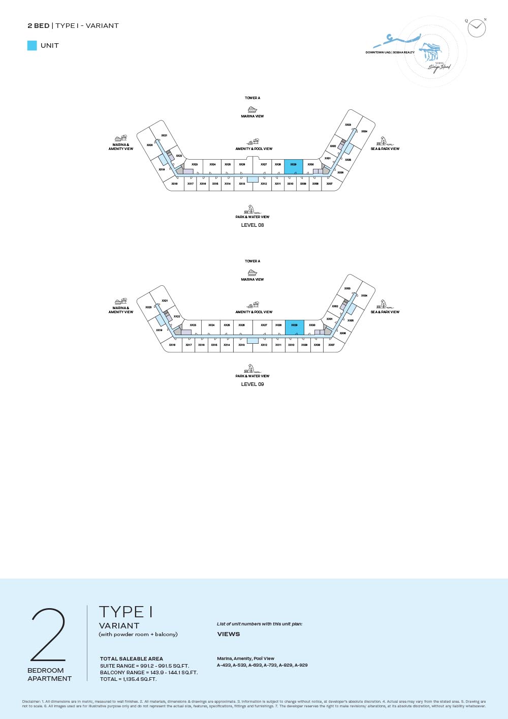 | Tower A | 2 Bedrooms | 08th & 09th Level (Type I-Variant) | 1135.40 Sq Ft | Click Here |