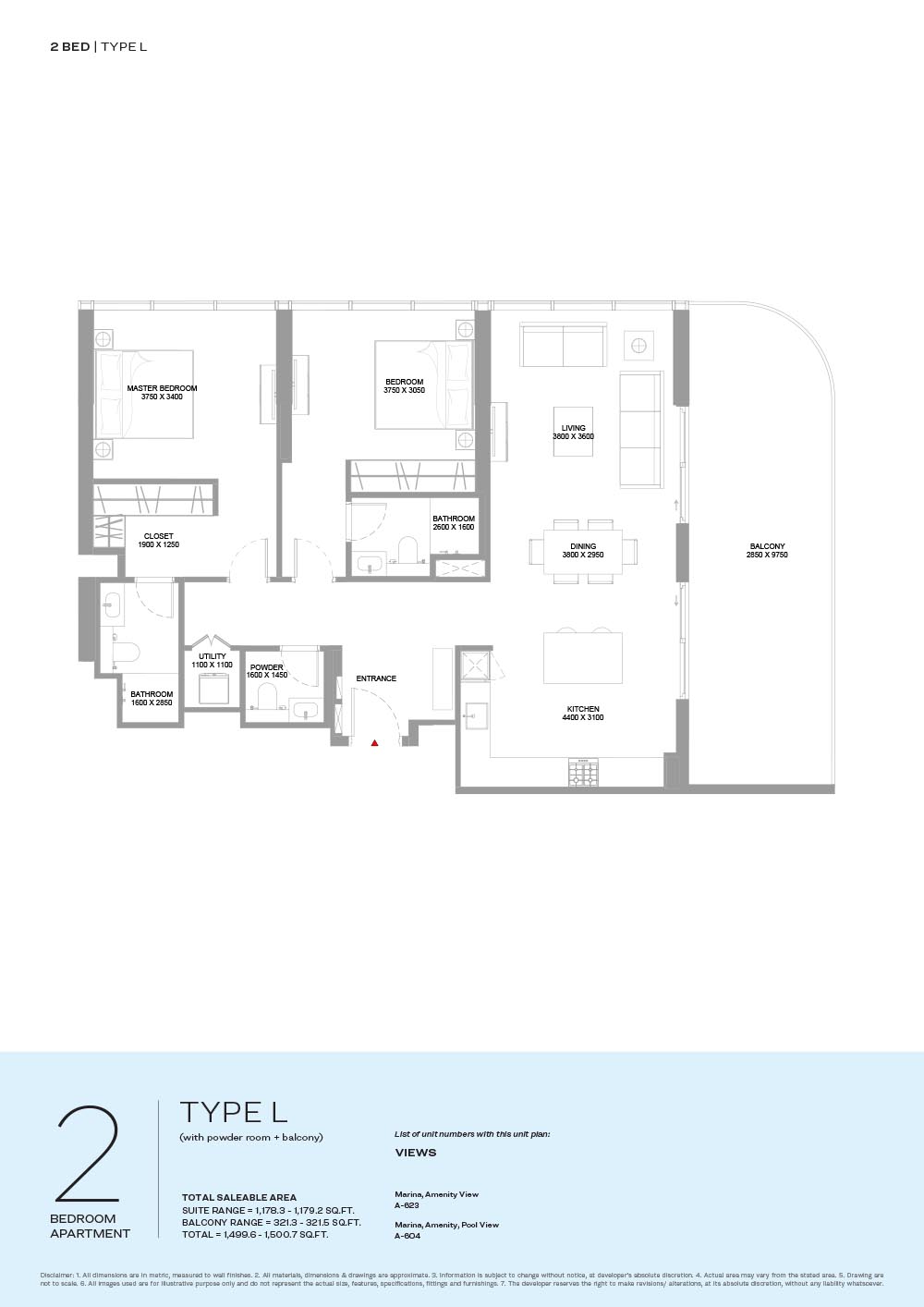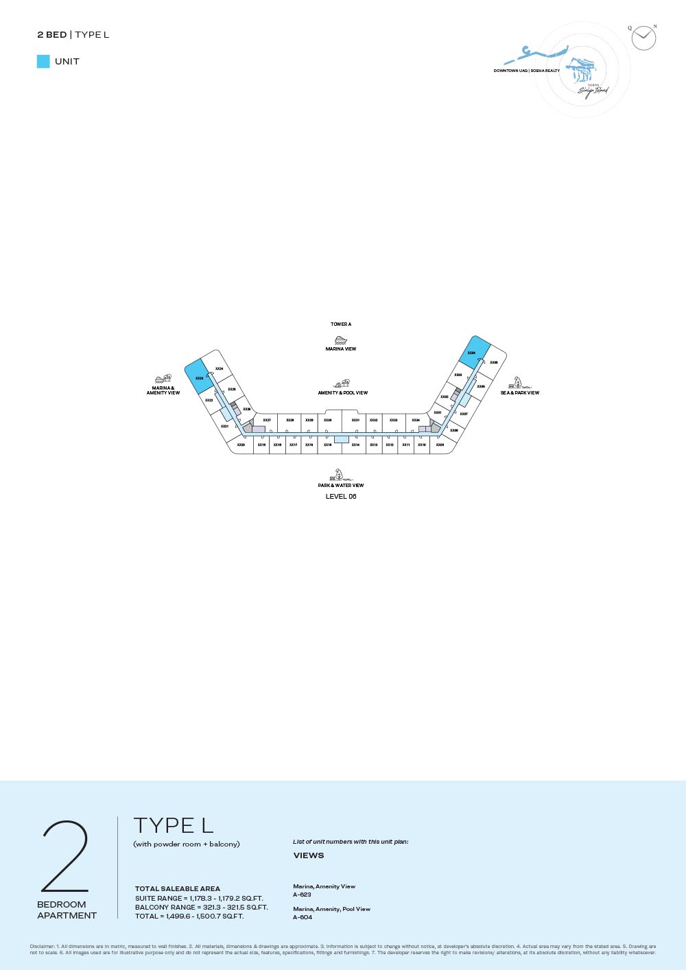 | Tower A | 2 Bedrooms | 06th Level (Type L) | 1500.70 Sq Ft | Click Here |