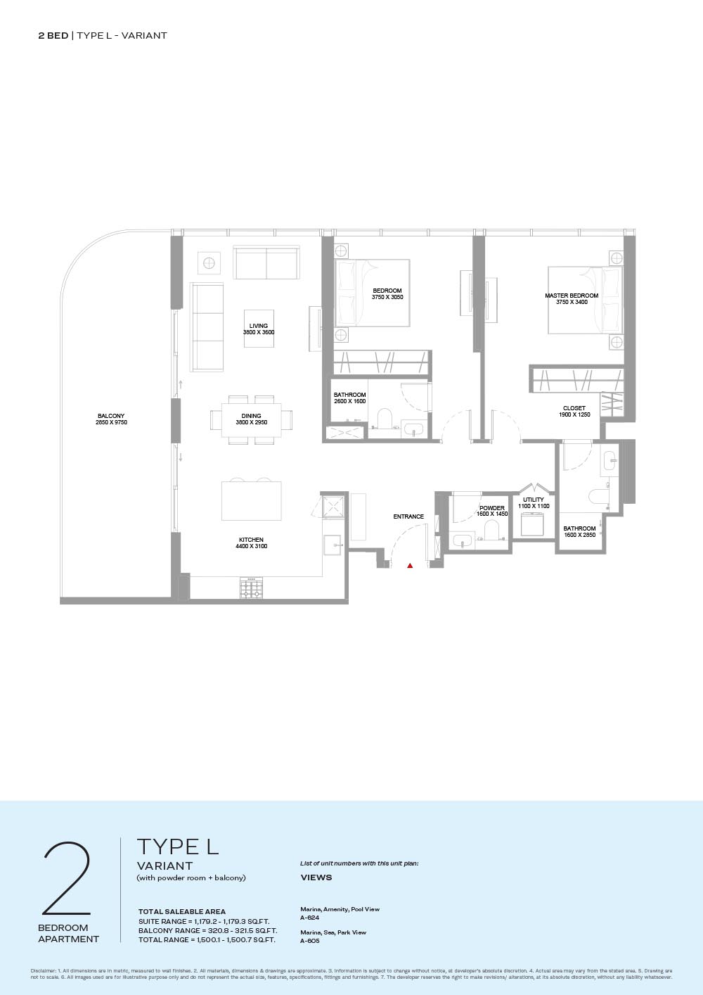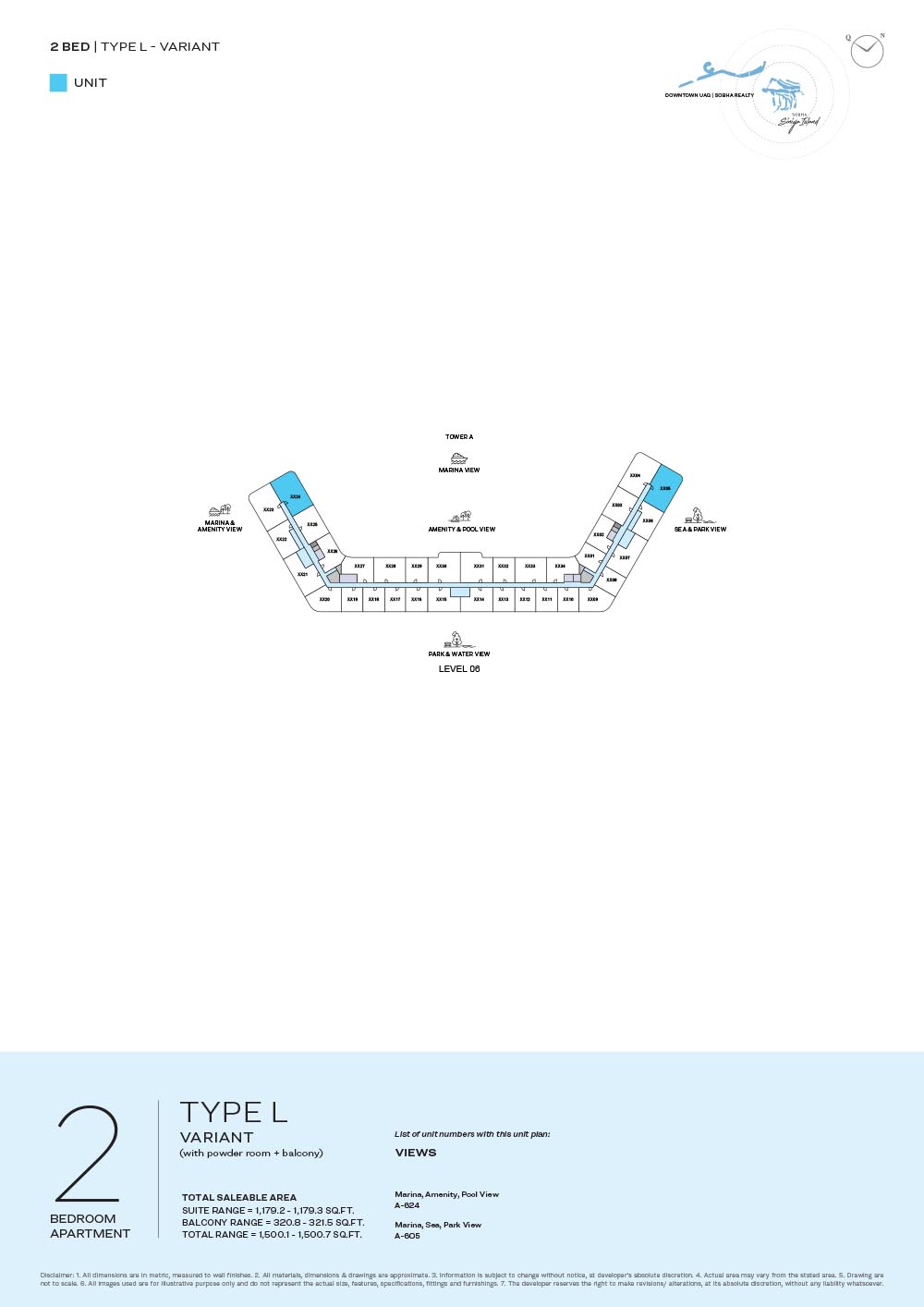 | Tower A | 2 Bedrooms | 06th Level (Type L-Variant) | 1500.70 Sq Ft | Click Here |