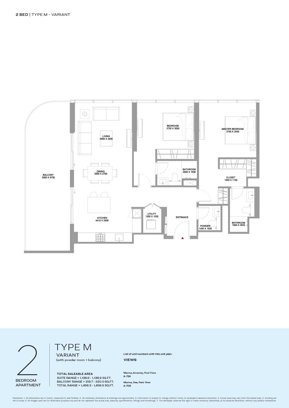 | Tower A | 2 Bedrooms | 07th Level (Type M-Variant) | 1458.90 Sq Ft | Click Here |