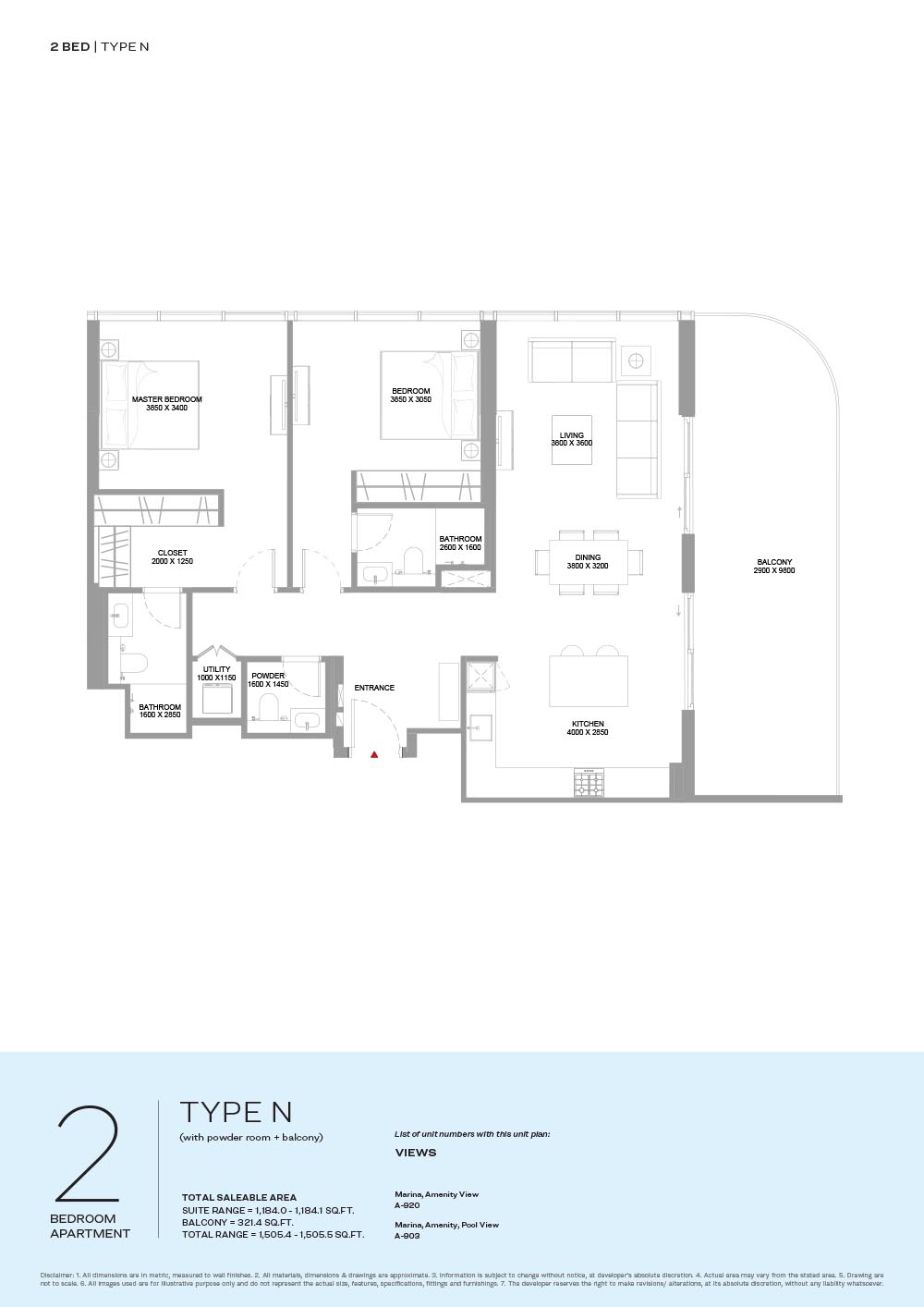| Tower A | 2 Bedrooms | 09th Level (Type N) | 1505.50 Sq Ft | Click Here |