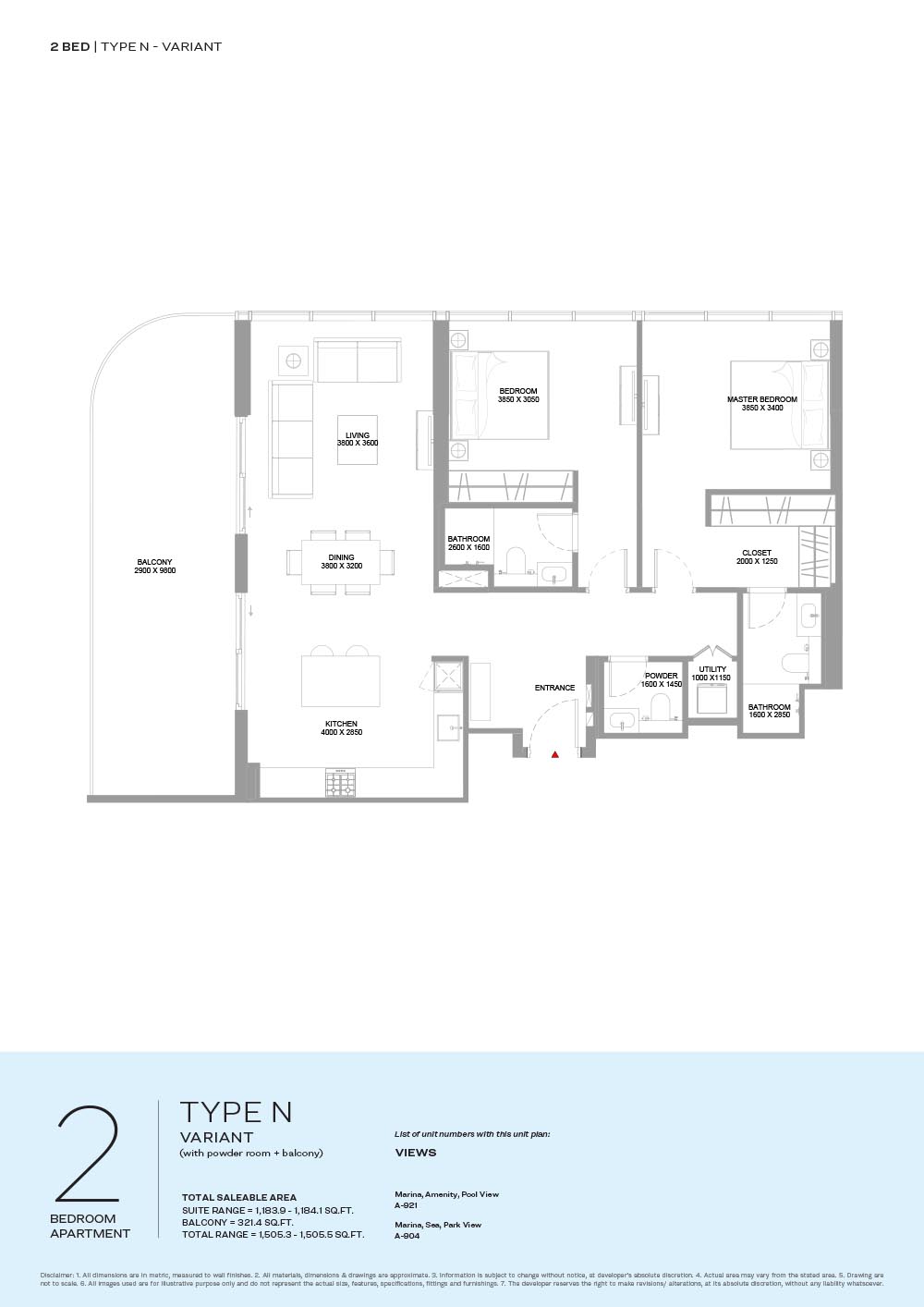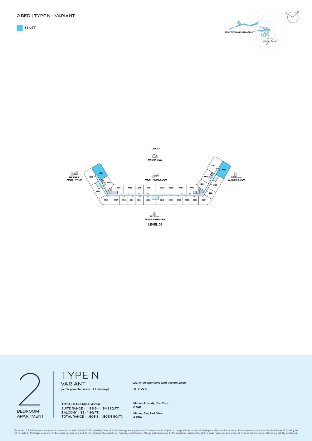 | Tower A | 2 Bedrooms | 09th Level (Type N-Variant) | 1505.50 Sq Ft | Click Here |