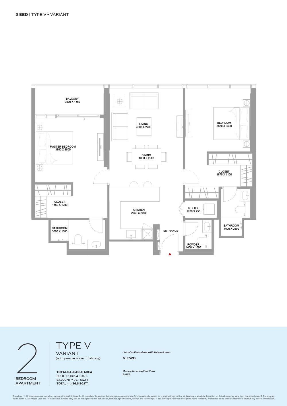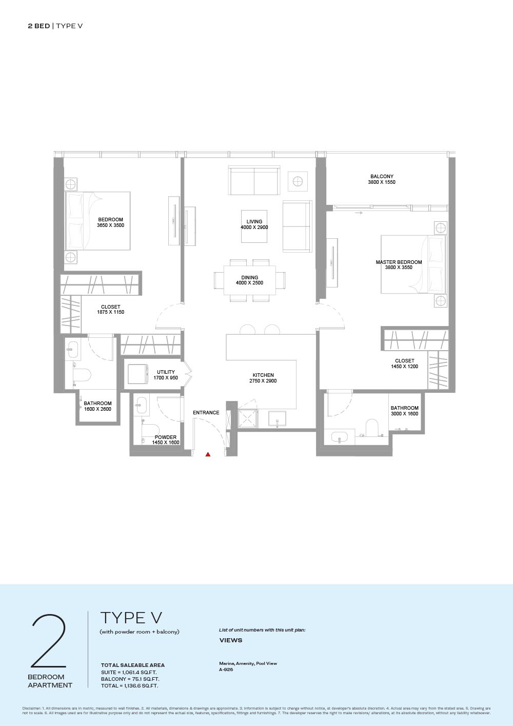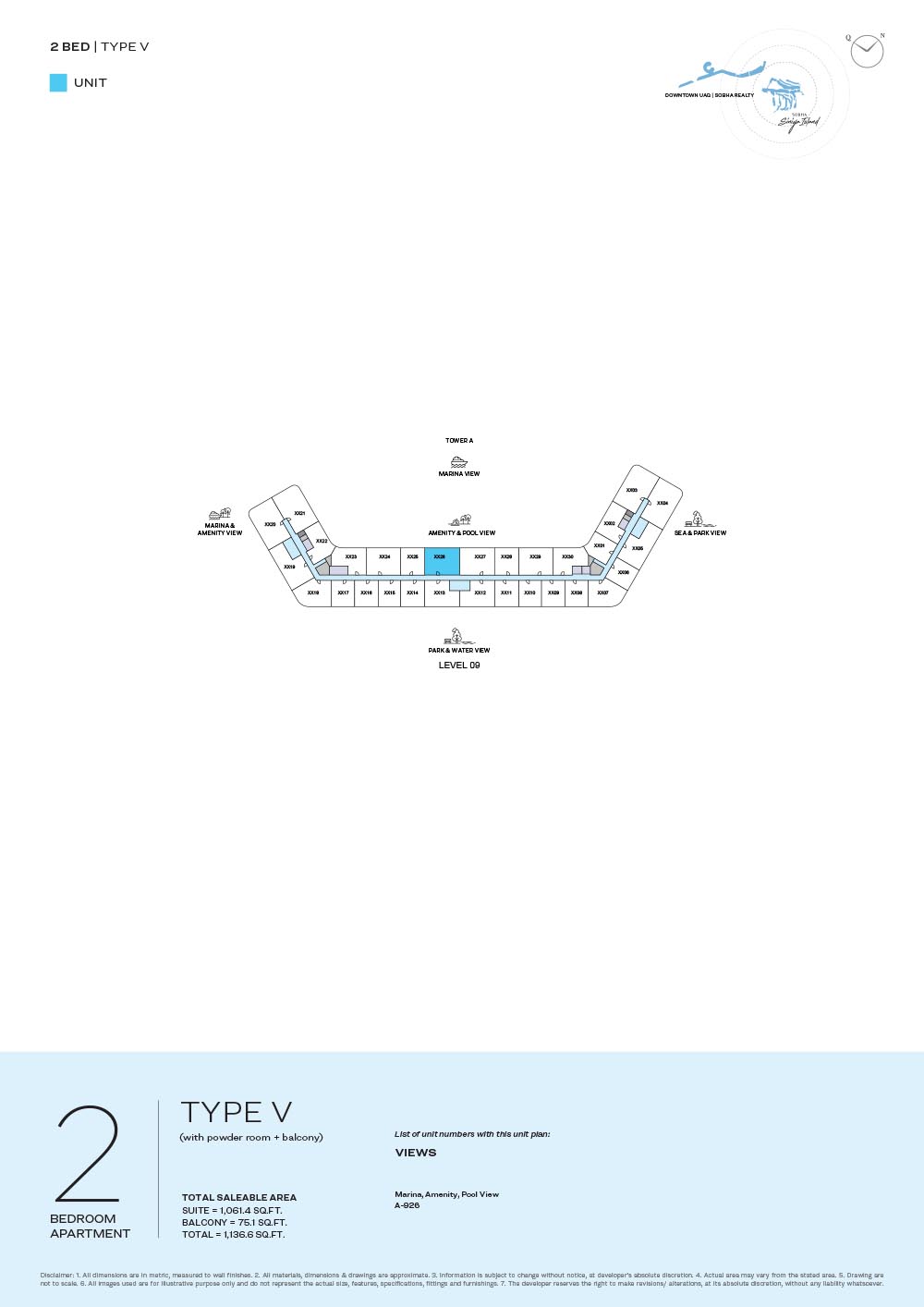 | Tower A | 2 Bedrooms | 09th Level (Type V) | 1136.60 Sq Ft | Click Here |