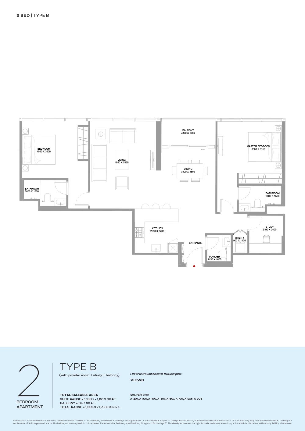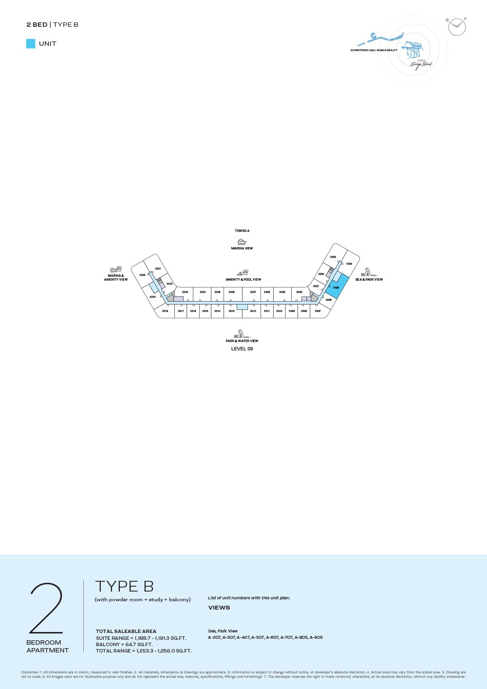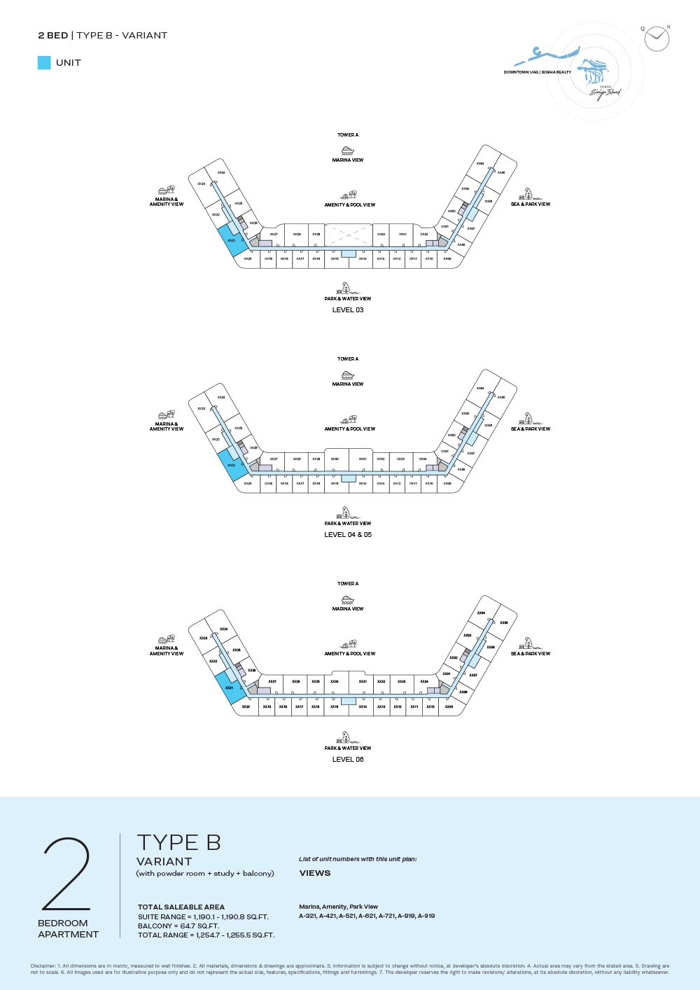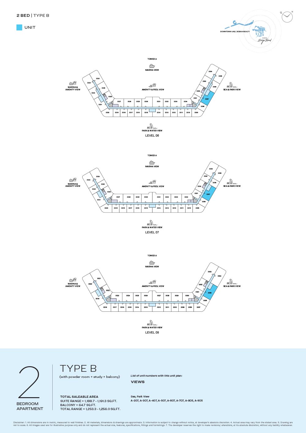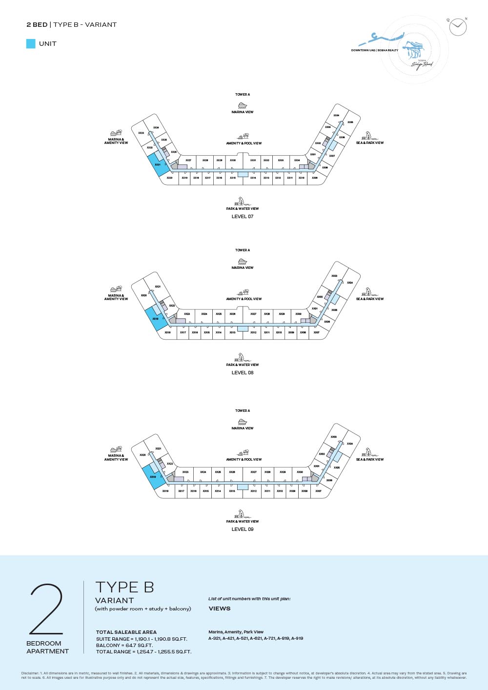 | Tower A | 2 Bedrooms + Study | 09th Level (Type B) | 1256.00 Sq Ft | Click Here |