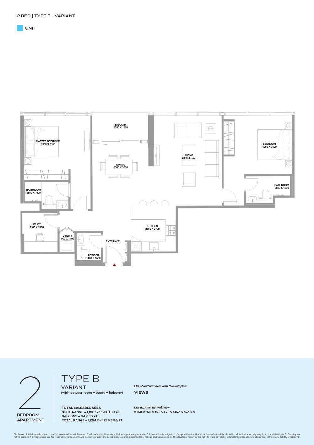 | Tower A | 2 Bedrooms + Study | 03rd-06th Level (Type B-Variant) | 1255.50 Sq Ft | Click Here |