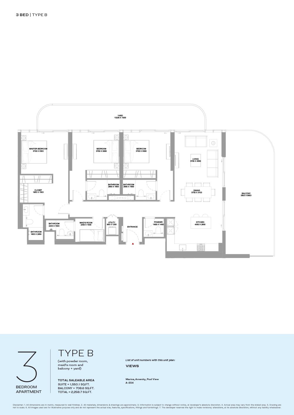 | Tower A | 3 Bedrooms + Maid | 02nd Level (Type B) | 2258.70 Sq Ft | Click Here |