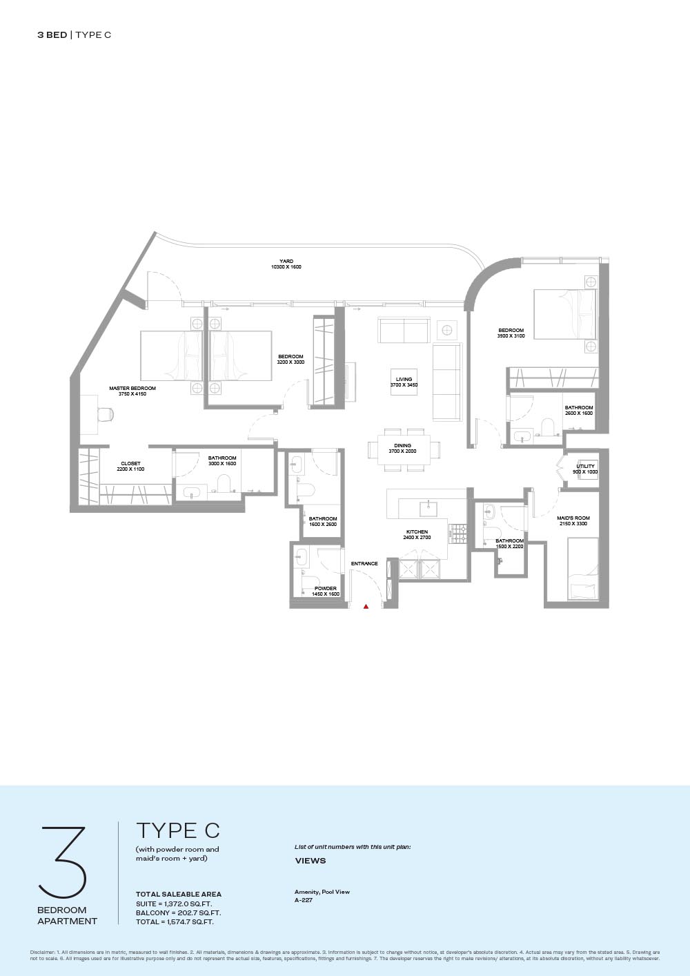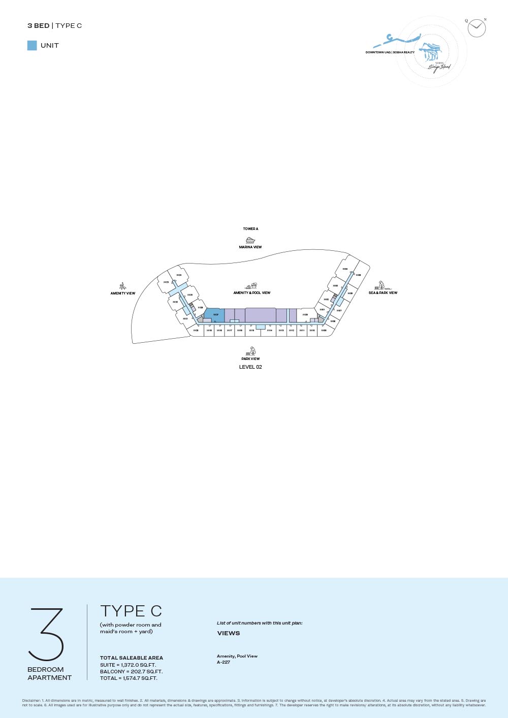 | Tower A | 3 Bedrooms + Maid | 02nd Level (Type C) | 1574.70 Sq Ft | Click Here |