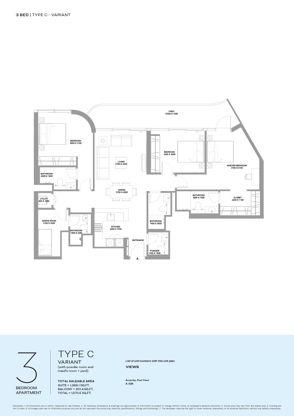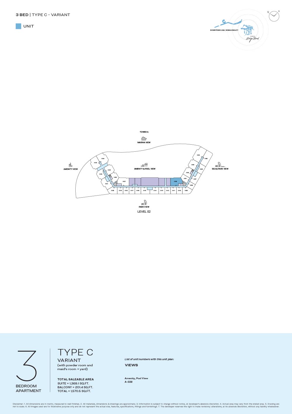 | Tower A | 3 Bedrooms + Maid | 02nd Level (Type C-Variant) | 1570.50 Sq Ft | Click Here |