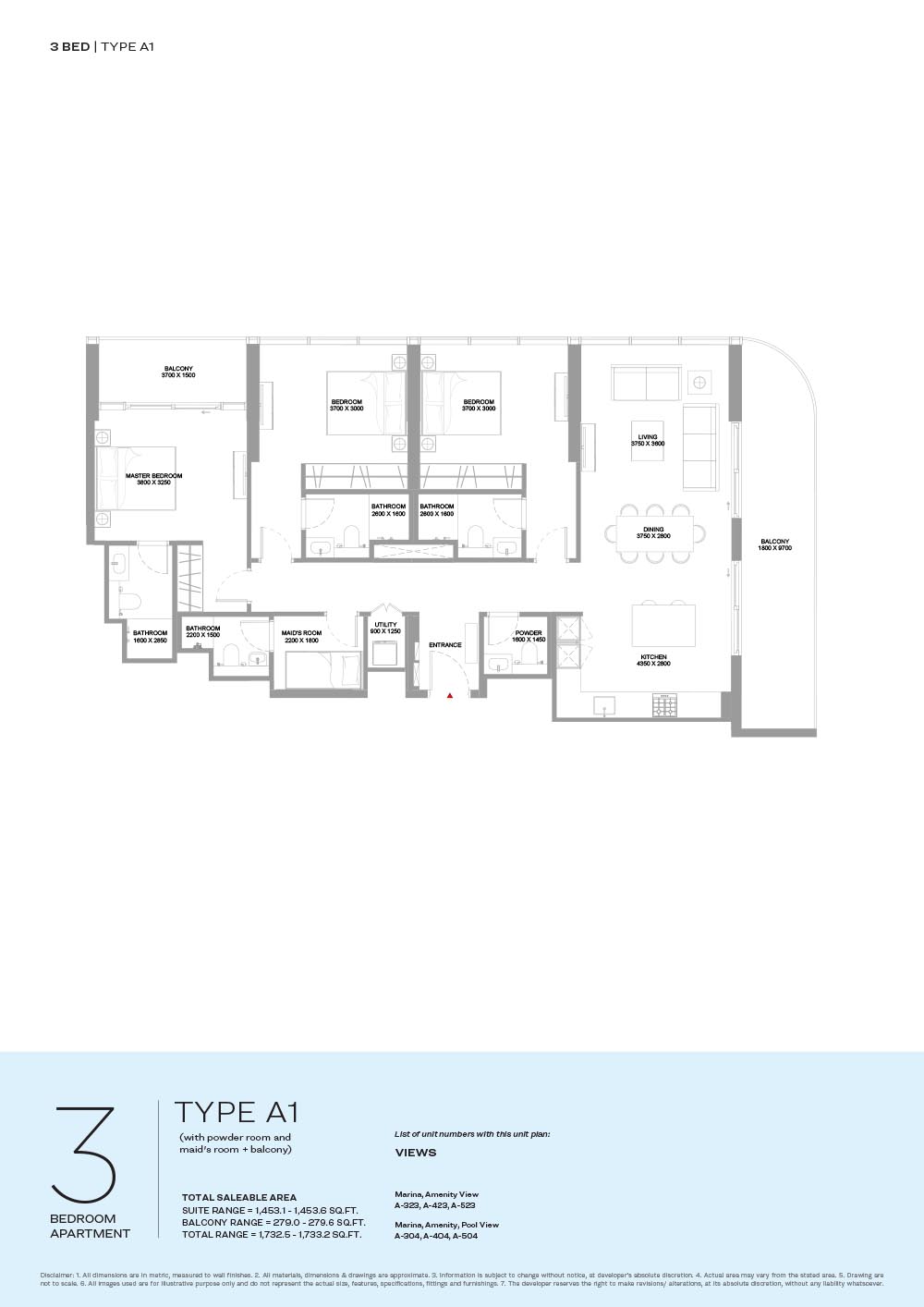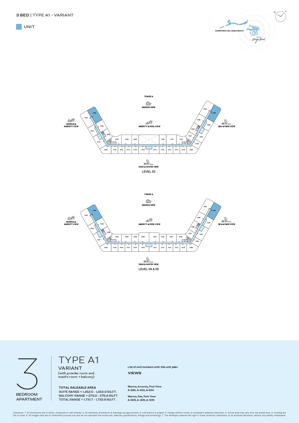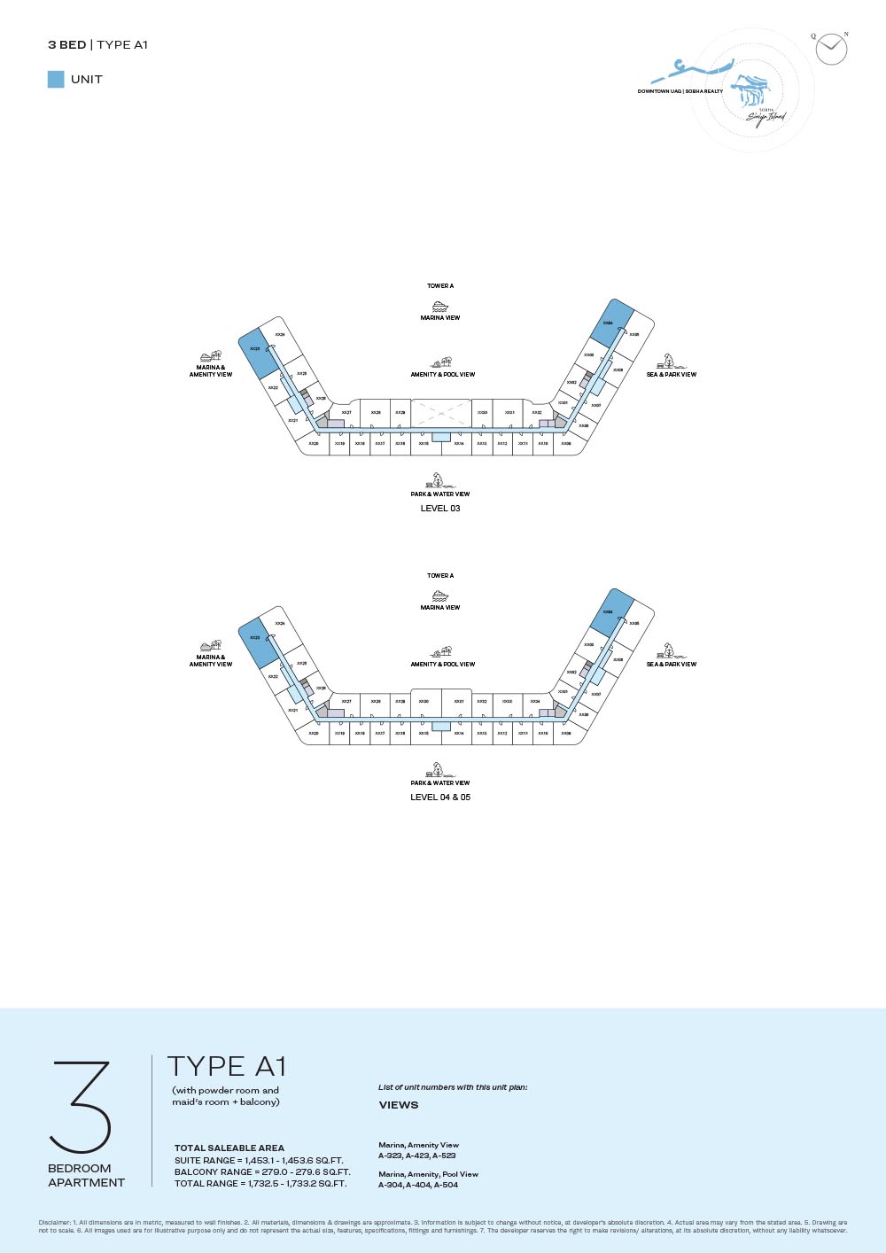 | Tower A | 3 Bedrooms + Maid | 03rd-05th Level (Type A1) | 1733.20 Sq Ft | Click Here |