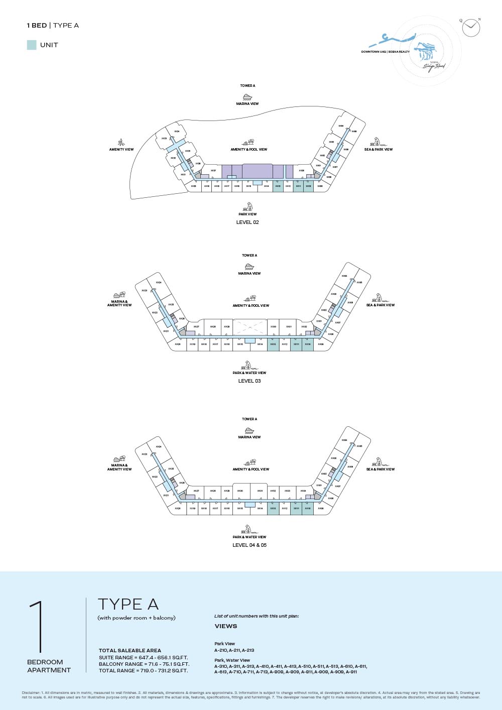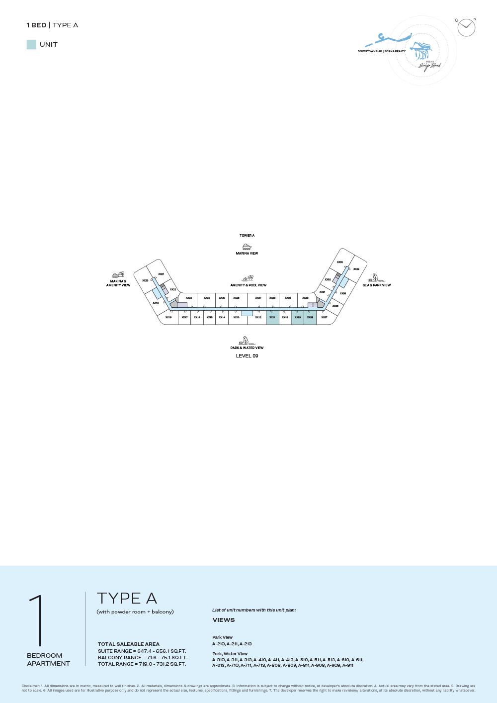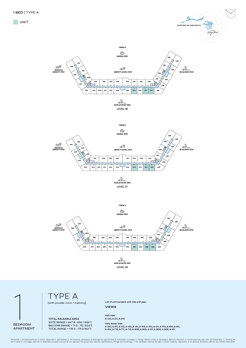 | Tower A | 1 Bedroom | 09th Level (Type A) | 731.20 Sq Ft | Click Here |