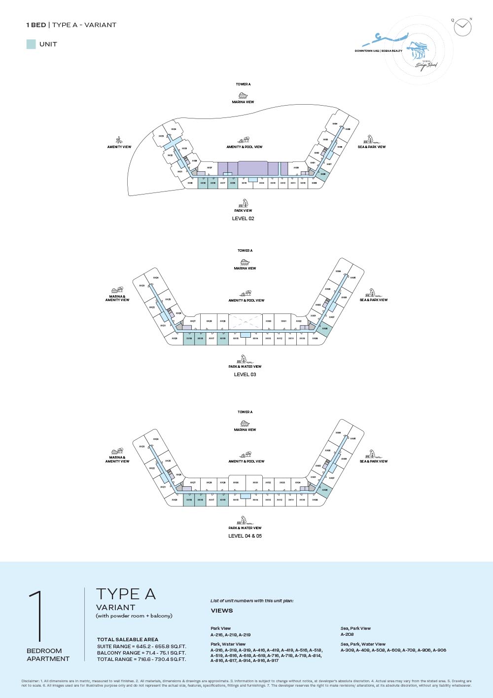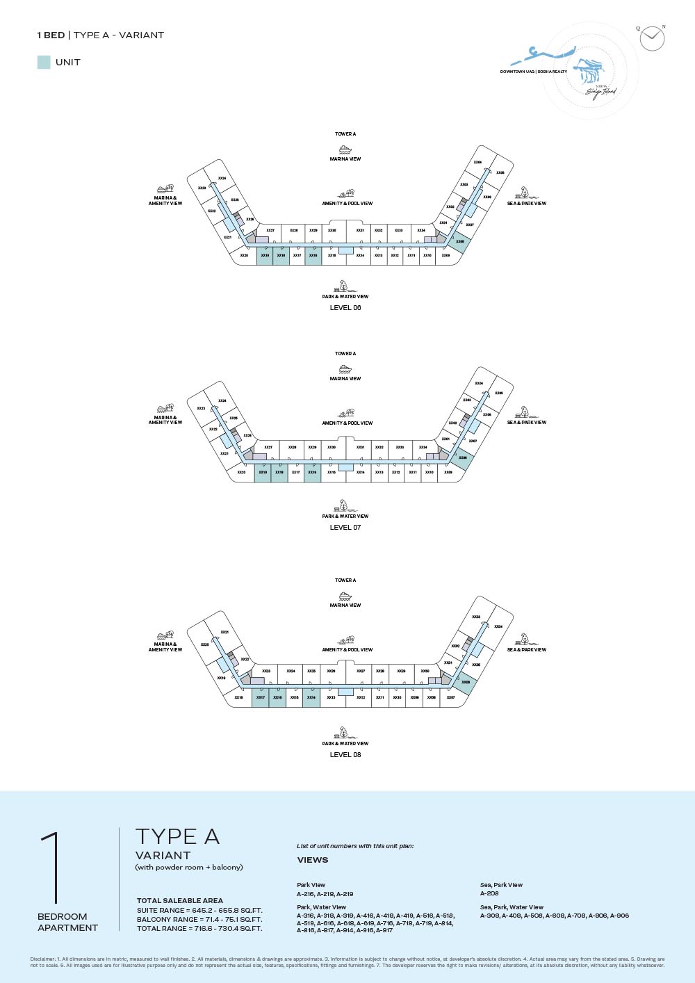 | Tower A | 1 Bedroom | 06th-08th Level (Type A-Variant) | 730.40 Sq Ft | Click Here |