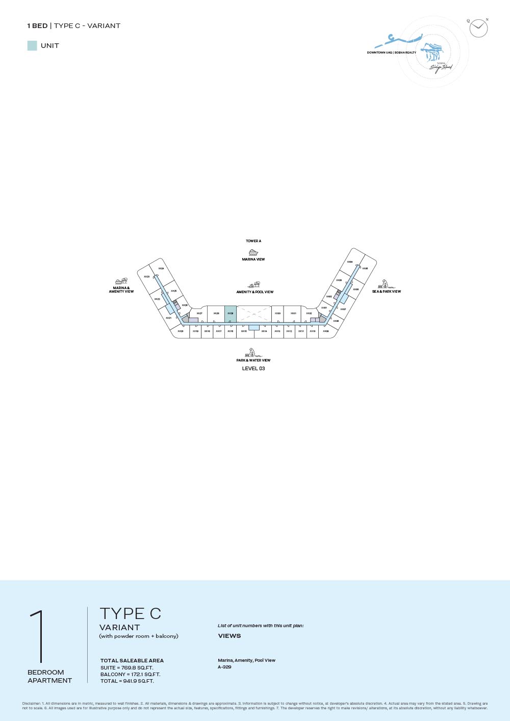 | Tower A | 1 Bedroom | 03rd Level (Type C-Variant) | 941.90 Sq Ft | Click Here |