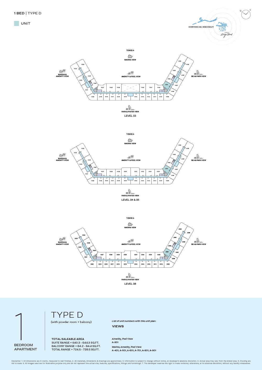 | Tower A | 1 Bedroom | 03rd-09th Level (Type D) | 728.50 Sq Ft | Click Here |