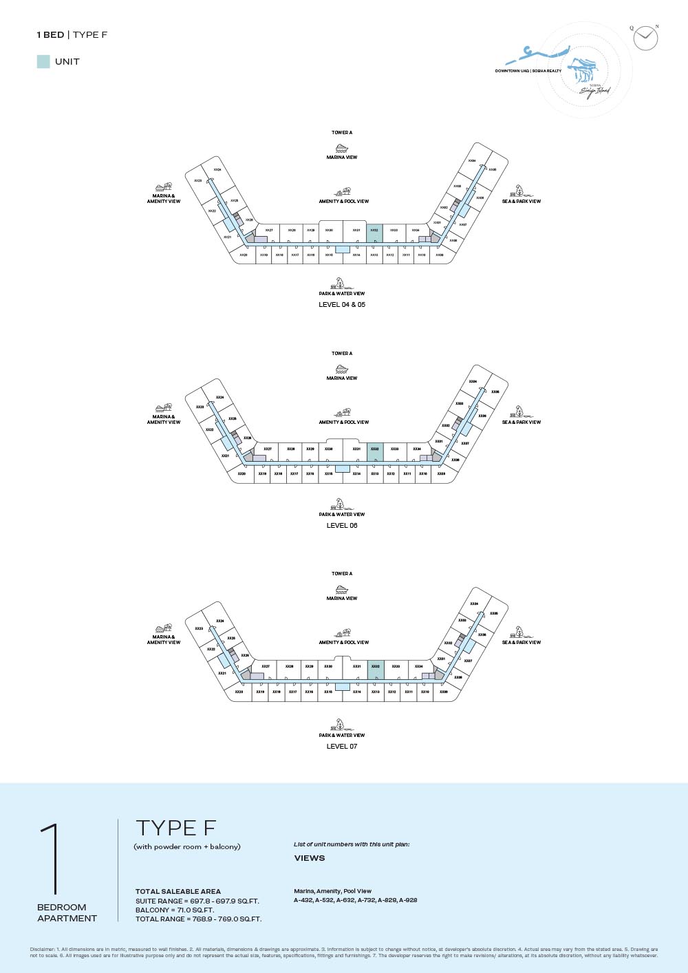 | Tower A | 1 Bedroom | 04th-07th Level (Type F) | 769.00 Sq Ft | Click Here |