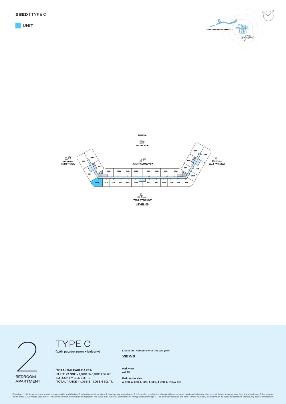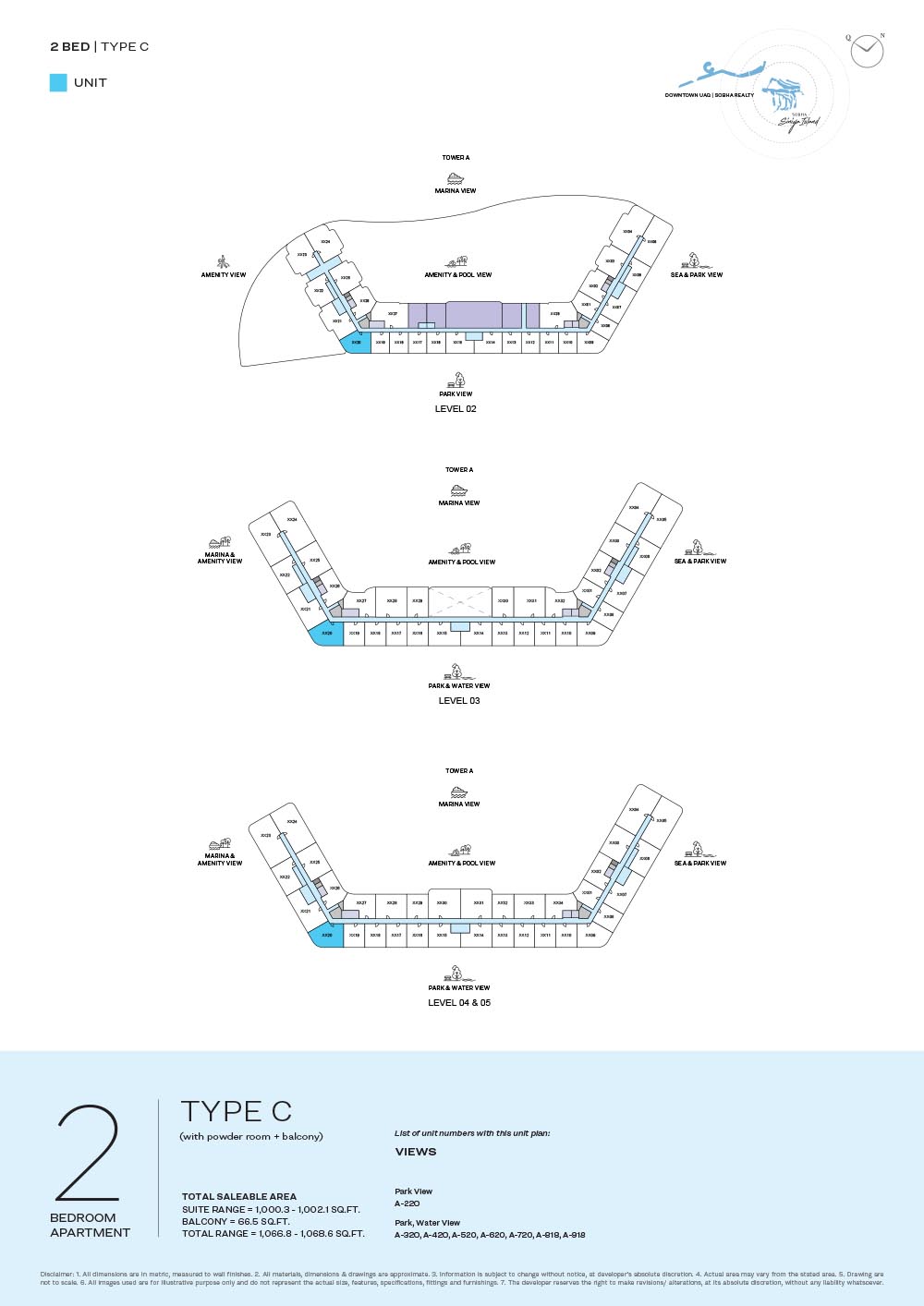 | Tower A | 2 Bedrooms | 09th Level (Type C) | 1068.60 Sq Ft | Click Here |