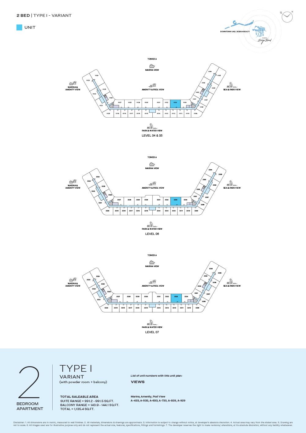 | Tower A | 2 Bedrooms | 04th-09th Level (Type I-Variant) | 1135.40 Sq Ft | Click Here |