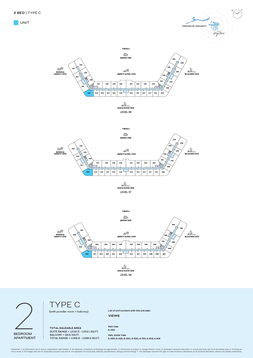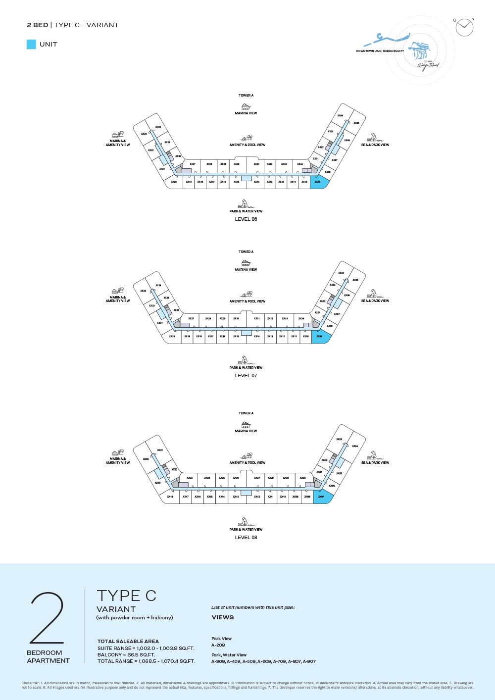 | Tower A | 2 Bedrooms | 06th-08th Level (Type C-Variant) | 1070.40 Sq Ft | Click Here |