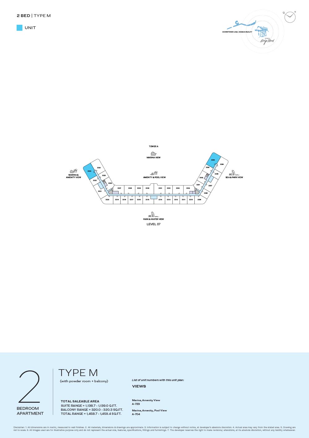 | Tower A | 2 Bedrooms | 07th Level (Type M) | 1459.40 Sq Ft | Click Here |