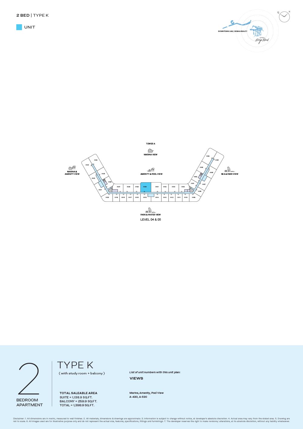 | Tower A | 2 Bedrooms + Study | 04th & 05th Level (Type K) | 1398.90 Sq Ft | Click Here |