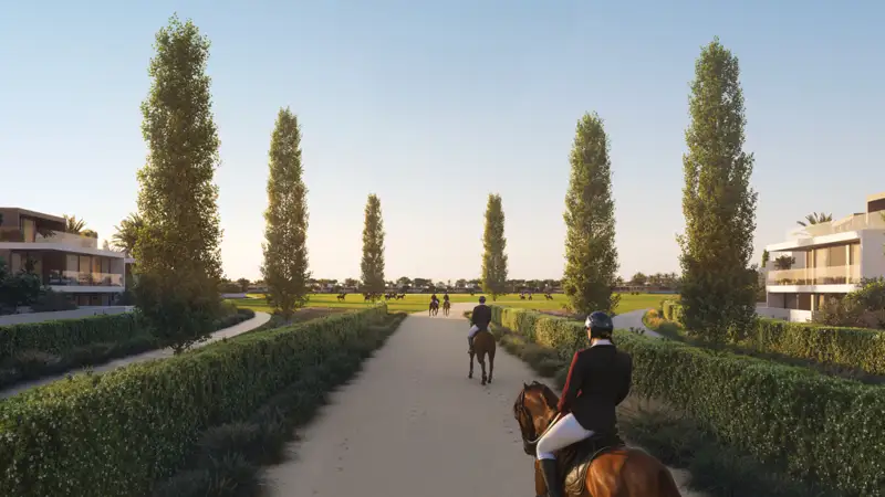 The master plan exists to deliver an unmatched residential experience based on equestrian refinement combined with deluxe living standards. This expansive portion features open areas and tree-lined streets and rolling hills surrounding the development. The estate follows low-density development principles which protect privacy and offer ample space. Additionally, it incorporates green pathways alongside leisure areas to unify various parts of the community.