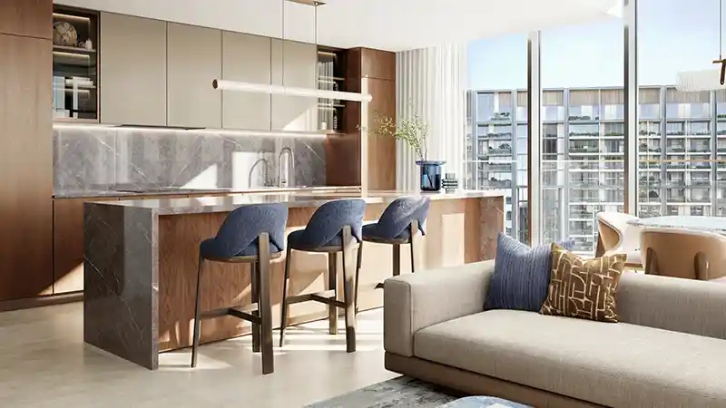 City Walk Crestlane Phase 5 by Meraas is launched to present the next-level modern residential craft, a twin tower complex with 1 to 4-bedroom apartments and duplexes. Enter a space where urban rhythm and waterfront foliage converge and you quickly realize that well considered moments can alter the lifestyle. Since the moment of the sunlight strikes a face of its mid-rise towers, to the subtle dance of water dropping through the landscaped center of the development. This is more than a living piece of art that is composed of light, of its texture and movement, and each terrace, each corridor and every other shared space has been orchestrated to amplify everyday life. It is an address in itself as well as a story of the senses: of serene pools and park views framed by expansive glazing; the slight rustle of footsteps over warm stone; the secret silence beyond a duplex door that leads to volumes rising to the ceiling.